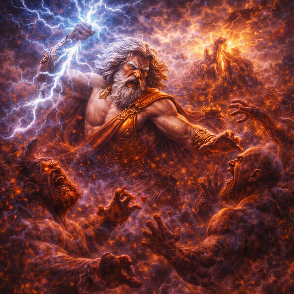 Древнегреческая мифология начинается не с героев и не с Троянской войны. Её истоки уходят гораздо глубже — в эпоху, когда миром правили титаны. Именно тогда произошла величайшая битва древности, определившая судьбу богов и людей. Битва Зевса и титанов стала моментом рождения Олимпа и нового мирового порядка. Этот миф — не просто история о войне. Это рассказ о смене эпох, о борьбе поколений и о том, как власть всегда требует силы, хитрости и решимости. Мир титанов До появления богов Олимпа миром правили титаны — древние божества невероятной силы. Они были детьми Урана, небесного свода, и Геи, самой земли. Главным среди них стал Кронос. Он сверг собственного отца Урана и занял место владыки мира. Но власть, полученная через насилие, редко бывает спокойной. Кронос услышал пророчество: один из его детей однажды лишит его трона. Это пророчество превратило правителя титанов в жестокого тирана. Чтобы избежать судьбы, он начал проглатывать своих новорождённых детей. Так исчезли Гестия, Деметра