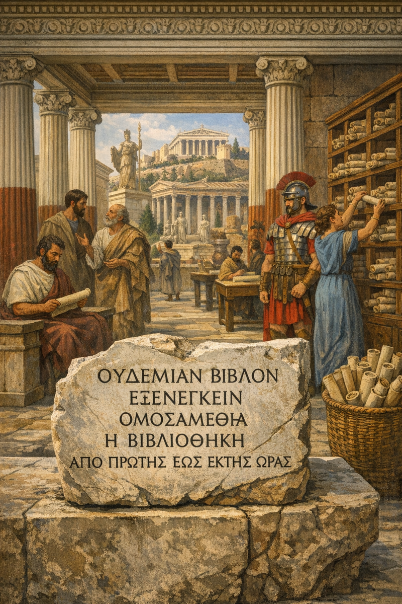 Надпись из библиотеки Пантаина - голос античного читального зала Почти две тысячи лет назад на мраморной плите в Афинах были высечены слова, удивительно знакомые современному читателю: книги из библиотеки выносить запрещается, а сама библиотека работает с первого до шестого часа дня. Эта короткая надпись - одно из редких свидетельств того, как была организована повседневная жизнь древних библиотек. Она позволяет заглянуть не в мир великих философских трактатов, а в более приземленную, но не менее важную сторону античной культуры - правила пользования книгами. В начале II века нашей эры Афины оставались одним из главных интеллектуальных центров Средиземноморья. Город уже давно находился под властью Рима, но сохранял статус духовной столицы античного мира. Сюда стекались философы, риторы, студенты и путешественники, желавшие прикоснуться к наследию классической Греции. Около 100 года н.э. афинский философ и богатый гражданин Тит Флавий Пантаин профинансировал строительство новой библиоте