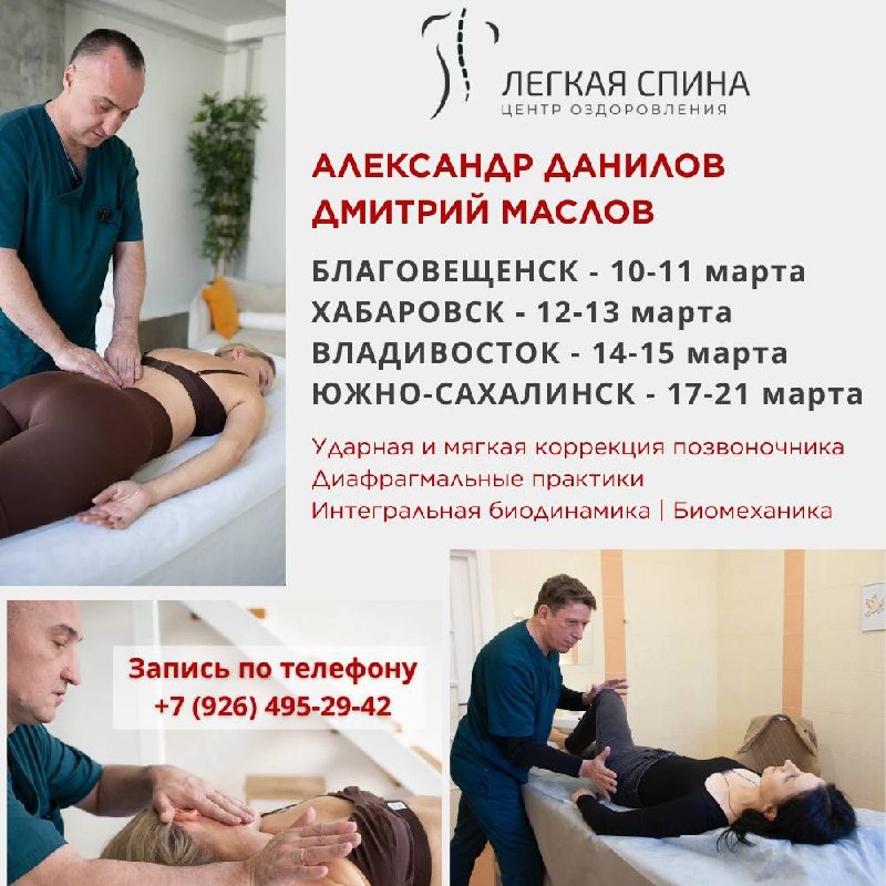Когда наступает весна, с одной стороны, появляются силы и настроение ко всему новому, с другой стороны, начинают проявляться все болячки и недомогания. Специалисты центра Легкая Спина предвидя это, активно разъезжают по регионам, чтобы успеть всем помочь😉 В ближайшие пару месяцев приемы пройдут: 📍 Благовещенск - 10-11 марта 📍 Хабаровск - 12-13 марта 📍 Казань - 13-14 марта 📍 Владивосток - 14-15 марта 📍 Южно-Сахалинск - 17-21 марта Определяемся с датой: 📌 Тюмень - март 📌 Калининград - март 📌 Омск - март-апрель 📌 Сургут | Нижневартовск - март-апрель 📌 Челябинск | Екатеринбург - март-апрель Открыт набор группы в следующих городах: 🔸 Новый Уренгой 🔸 Санкт-Петербург 🔸 Кострома Если вашего города нет в списке, вы можете оставить заявку по телефону + 7 (926) 495-29-42 Запись на прием: ☎️ + 7 (926) 495-29-42 - Регионы ☎️ + 7 (499) 755-53-55 - Москва
