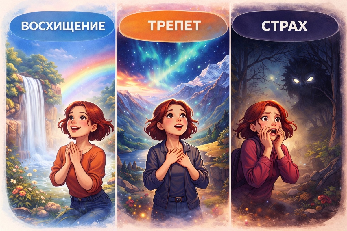 - Страх, интегрированный с восхищением, усиливает эмоциональную вовлечённость и внимание. Это состояние может стать катализатором глубоких переживаний и инсайтов.