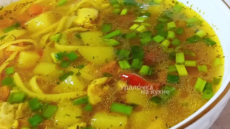 - Если хотите сделать суп еще интереснее, попробуйте добавить щепотку куркумы — она придаст бульону ярко-желтый «деревенский» цвет, даже если морковь не очень сочная.