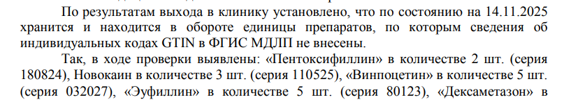 Сегодня хотим разобрать свежий судебный кейс (Москва, февраль 2026), который хорошо показывает: МДЛП проверяют не “для галочки” — это уже напрямую влияет на риски по лицензии. Прокуратура проверила клинику. В ходе осмотра нашли препараты, которые хранятся и находятся в обороте, но в ФГИС МДЛП по ним не внесены сведения. По материалам дела выявили, в том числе: То есть по факту лекарства были в шкафу/на складе, а по системе — их движения и коды не отражены. А значит контролёры видят ситуацию так: “Организация не обеспечивает достоверность учёта и мониторинга оборота лекарственных препаратов”. Суд отдельно подчеркнул логику контроля: недостоверные данные в МДЛП → искажают общую картину оборота лекарств → могут повлиять на оценку потребности и планирование закупок. Дело рассматривалось по ч.4 ст.14.1 КоАП РФ — грубое нарушение лицензионных требований. Итог: генерального директора привлекли к ответственности. Штраф назначили минимальный — 5 000 рублей. Важно: сумма минимальная, но юридичес