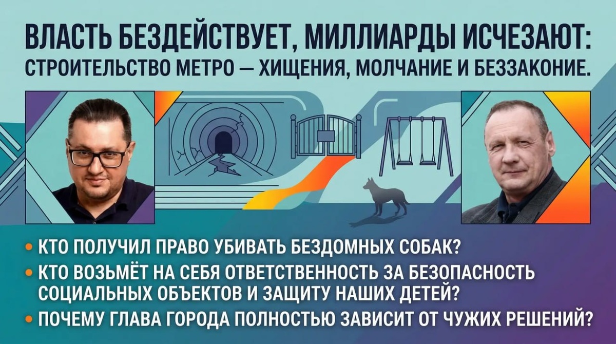 Коррупционные скандалы снова сотрясают наш метродолгострой: колоссальные суммы исчезают, а городские власти продолжают сохранять гробовое молчание. Кто ответит за разворованные миллиарды? Сколько ещё власти будут закрывать глаза на беззаконие? Кто получил право убивать бездомных собак? Кто возьмёт на себя ответственность за безопасность социальных объектов и защиту наших детей? Почему глава города полностью зависит от чужих решений? Ответы на самые острые вопросы — в программе «Политпасьянс» в пятницу на телеканале Афонтово в 20:00 и 22:30. Анонс очередного выпуска "Политпасьянса" смотрите в МАХ-канале Афонтово. Мы не гадаем, мы разбираемся! Подписаться на Афонтово в МАХ