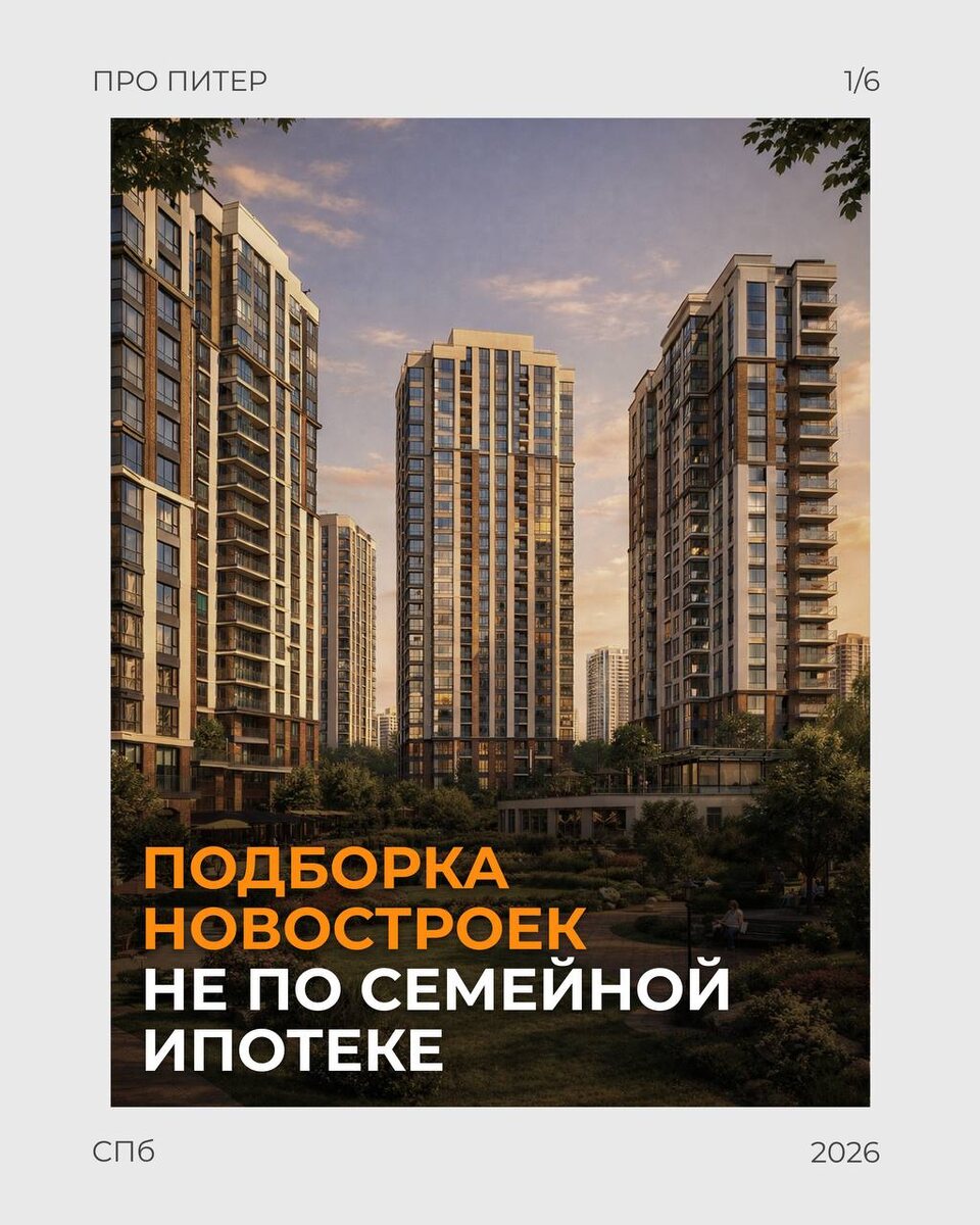 🤌🏻 Ни котенка, ни ребенка 🐈👶🏼 Сейчас на рынке недвижимости сложилась парадоксальная ситуация. Кажется, что если у вас нет детей, то дверь в классные новостройки для вас закрыта. «Семейка» рулит, а всем остальным банки выкатывают сумасшедшие ставки под 20%+. Срочно заводить ребенка ради выгодной ставки — план так себе! Хорошая новость в том, что рынок адаптировался, и покупать выгодно можно и без льгот. Застройщики понимают ситуацию и дают крутые альтернативные инструменты: умные рассрочки, субсидированные ставки и транши. Мы перерыли весь рынок и собрали в карточках к этому посту подборку новостроек для тех, у кого нет семейной ипотеки ❌ ➡️ Листайте карточки, там все цифры и расчеты. Не нужно ждать лучших времен или паниковать из-за ставок. Инструменты есть, главное — уметь ими пользоваться. Если хотите примерить эти расчеты на свою ситуацию или подобрать другой ЖК под ваш бюджет — пишите напрямую моим агентам ➡️ @ProPiterBot. Всё честно посчитаем и найдем лучший вариант!