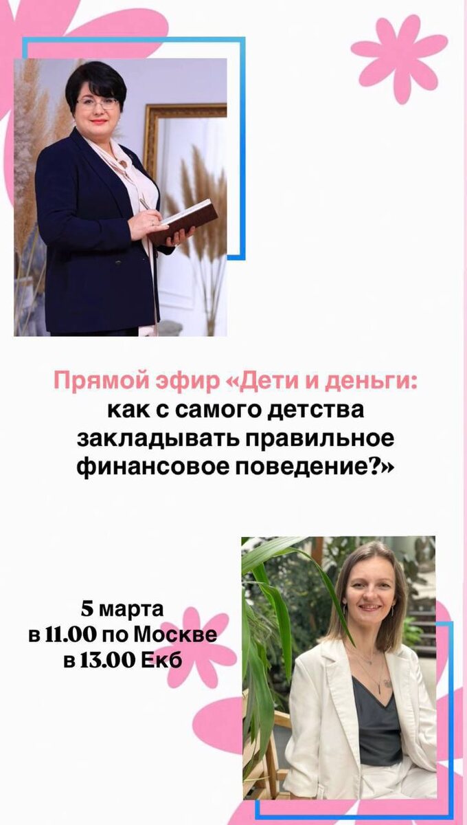 ? С чего начать? Какие наши действия приводят к ошибкам с финансами у наших детей в будущем? Будем сегодня разбирать на прямом эфире с семейным психологом Татьяной Пестеревой в 13.00 по времени Екб (11 мск) Эфир пройдет в зуме. Запись будет. Ссылка 👇 https://us06web.zoom.us/j/86554467328?pwd=X7HBvZvnivN1uUBc3aB5bl0M0f6M1b.1 Идентификатор конференции: 865 5446 7328 Код доступа: 158266