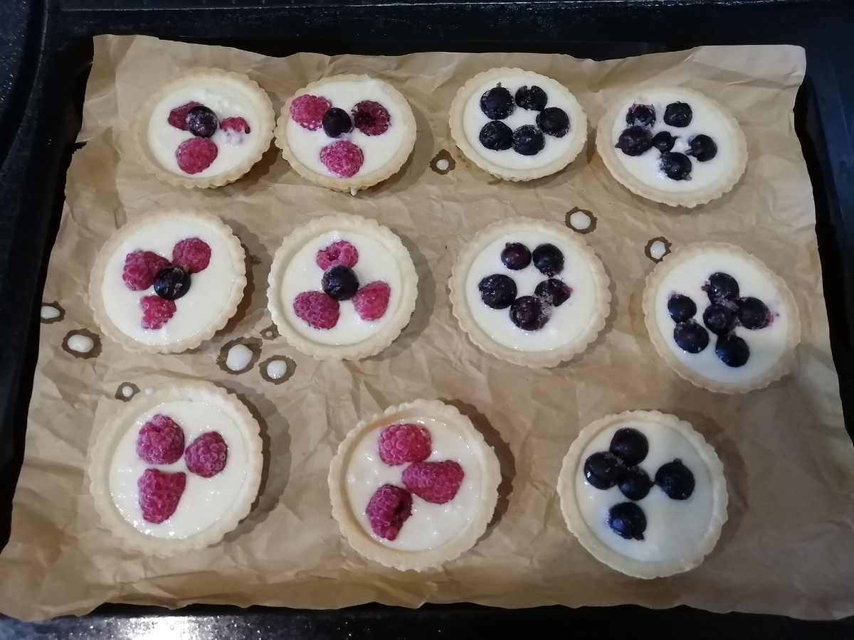 2.Заполнила тарталетки заливкой.