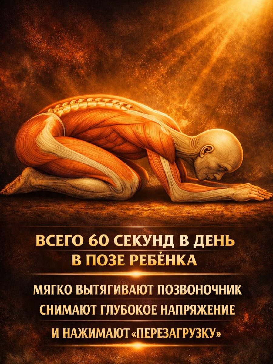 Ребенка, или Баласана! 🙏👶 Это не просто какая-то там асана. Это твой личный островок спокойствия, твоя «тайная комната», где никто не найдет потерянные носки и не спросит: «Ма-а-ам, а что покушать?» Вот за что я ее люблю и почему она должна быть в арсенале каждой из нас: 🔠1. Перезагрузка для нервной системы (Антистресс №1!) 🧠 Представь, что ты выключаешь телефон на несколько минут, чтобы он «отдохнул». Вот так же работает Поза Ребенка для твоей головы. Когда лоб касается пола, это мгновенно успокаивает мозг и снимает напряжение. Все эти бесконечные списки дел, вопросы «а что на ужин» и переживания уходят на второй план. Ты просто есть. И это уже немало. 🔠Нежное растяжение для спины и бедер 💪 Если ты много сидишь за компьютером, стоишь у плиты или таскаешь детей (привет, боли в пояснице!), Баласана — твой лучший друг. Она очень мягко вытягивает позвоночник, снимая зажимы, и расслабляет мышцы бедер и ягодиц. Это как горячая ванна для уставшего тела, только без воды и пены. 🔠О
