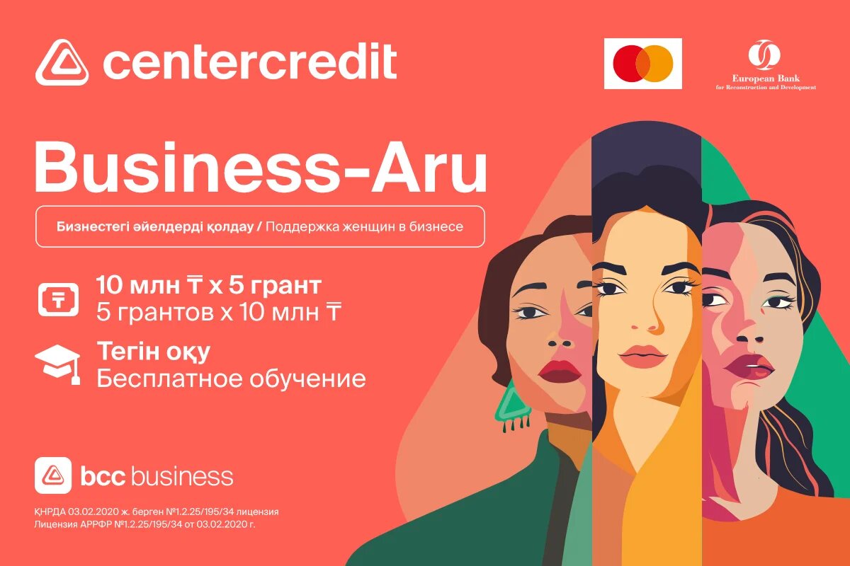 Банк ЦентрКредит совместно с Mastercard и при поддержке Европейского банка реконструкции и развития (ЕБРР) с 6 марта т.г. открывает регистрацию на грантовый проект Business-Aru – образовательно-конкурсной платформы, созданной для поддержки и развития женского предпринимательства в Казахстане, передает Azattyq Rýhy. Business-Aru – это бесплатная программа обучения и конкурс бизнес-планов для казахстанских женщин, желающих запустить или развить собственное дело. Участницы проходят курсы по финансам, маркетингу, продажам и управлению бизнесом, после чего разрабатывают индивидуальный бизнес-план и представляют его жюри. К участию приглашаются женщины старше 18 лет, как начинающие предпринимательницы, так и те, кто уже ведет бизнес и хочет его масштабировать. «В прошлом году проект превзошел наши ожидания. Более трех тысяч женщин со всего Казахстана приняли участи в проекте, 44 финалистки защитили бизнес-планы, а победительницы уже реализуют свои идеи при поддержке банка. Мы увидели огромны