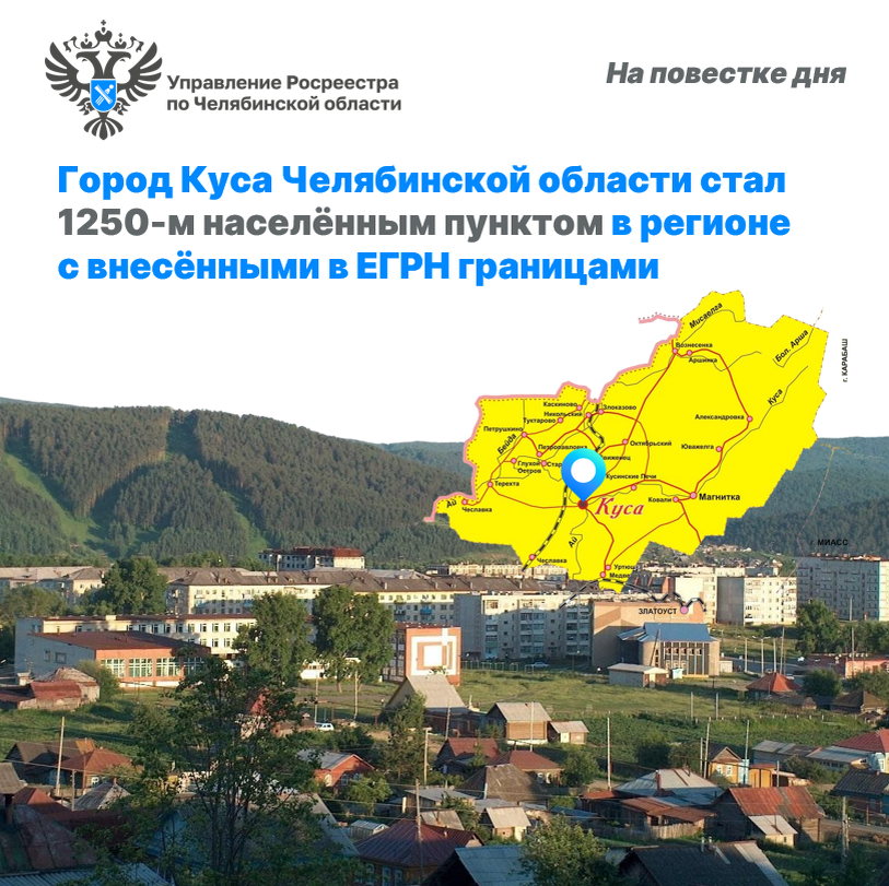 Город Куса Челябинской области стал 1250-м населённым пунктом в регионе с внесёнными в ЕГРН границами