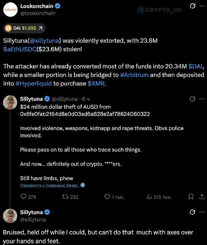 🔞 Криптоинвестора ограбили на $24,000,000 (Lookonchain