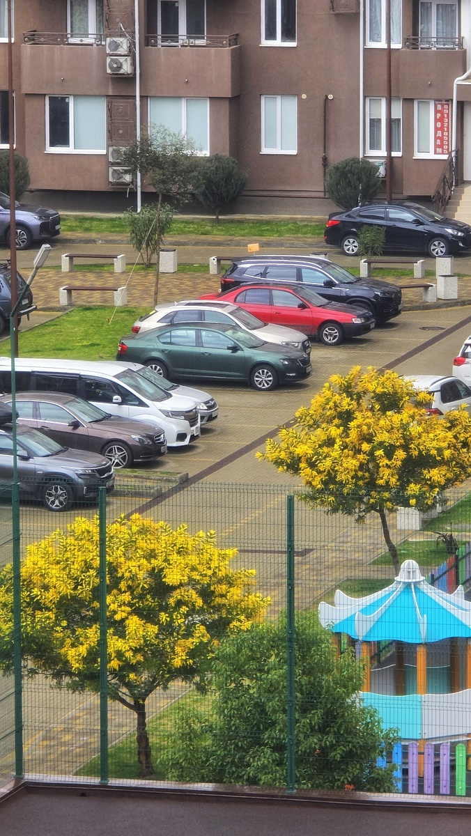 Внутренний дворик по улице Калараш, ЖК Семейный - замечено несколько "мимоз" в цвету