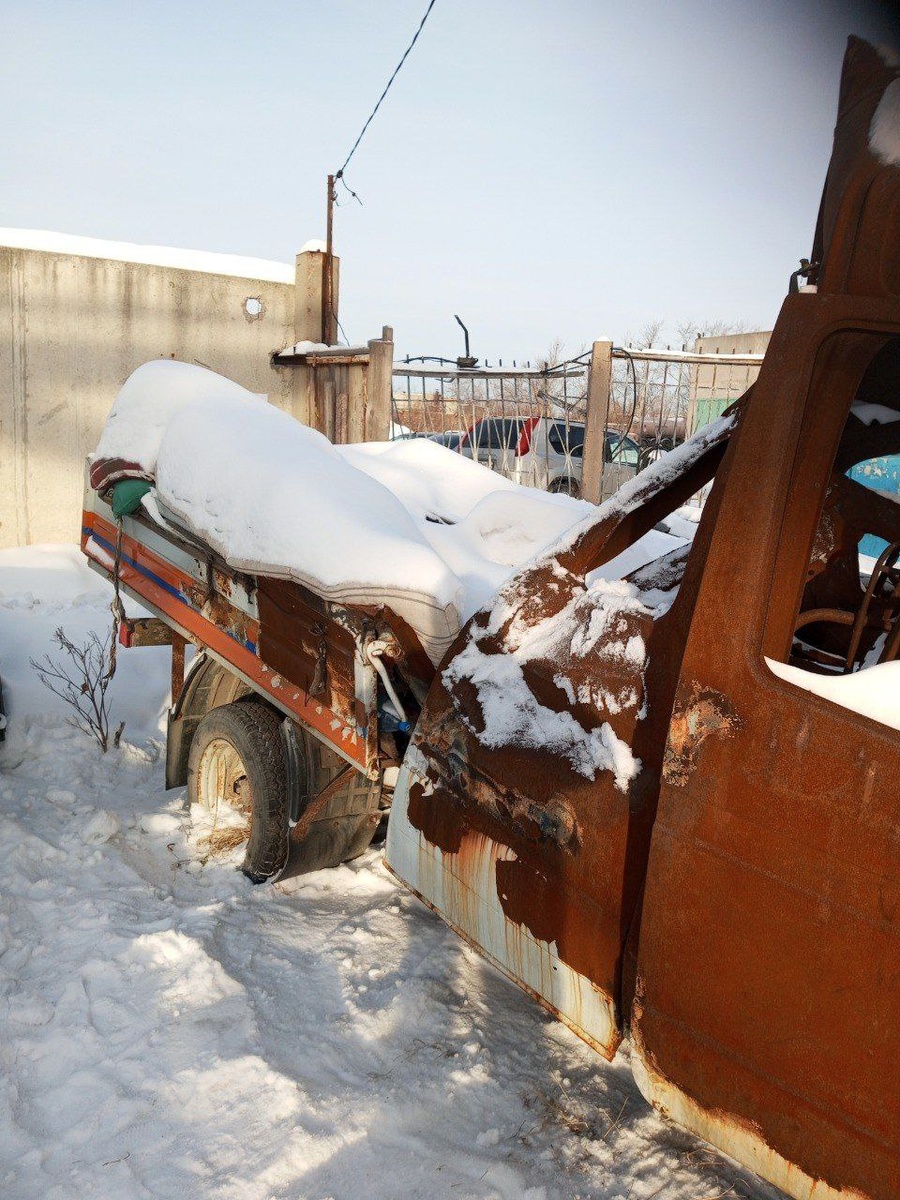 Максим нашёл этот лот на муниципальных торгах. ГАЗ – 33023 после пожара, а впоследствии, и взрыва газового баллона. Посоветовавшись со мной, было принято решение участвовать в данных торгах. Данный автомобиль интересен тем, что он 2012-го года выпуска и наличием ПТС. Было подано две заявки, заявка конкурента была отклонена из за ошибок в документах и мы ее забрали по начальной цене в 21 500 руб. Со всеми сопутствующими расходами она обошлась в 25 000 руб. На «Авито» было много желающих её приобрести, даже несмотря на деформированную раму после взрыва. Интерес у каждого был разный. Кому-то нужны были только документы (интересанты с других регионов), кто-то хотел забрать целиком на запчасти, остальных же интересовали отдельные элементы - диски, уцелевший задний борт, балка или мост с рессорами. Из моральных соображений предпочтение отдали покупателю, у которого такое занятие «для души», вызывает страсть заниматься восстановлением техники, находящейся в подобных состояниях
