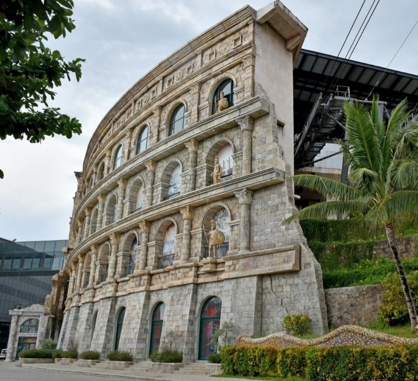 От этого "Колизея" отходят кабинки, которые уносят пассажиров на остров Хон Том (в переводе Ананасовый остров) по самой длинной в мире канатной дороге над морем, официально занесённой в Книгу рекордов Гиннесса.