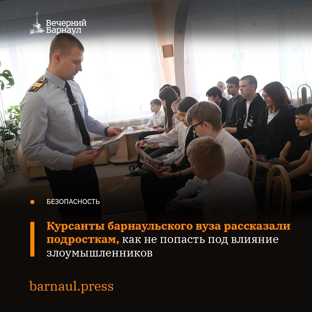 попечения родителей, № 2. Профилактические беседы со школьниками и студентами СПО курсанты проводят в рамках проекта «Равный равному». В Барнаульском центре помощи детям, оставшимся без попечения родителей, № 2 участниками встречи стали подростки от 12 до 17 лет. Курсанты донесли до них актуальную информацию о схемах вербовщиков, ответили на вопросы ребят, раздали памятки об уровнях террористической опасности и о том, как вести себя при угрозе совершения террористического акта. Воспитанники центра показали хорошие знания и осознанный подход — их педагоги регулярно общаются с ребятами на эти важные темы. 📬 Подписывайтесь на наш канал в MAX @barnaul