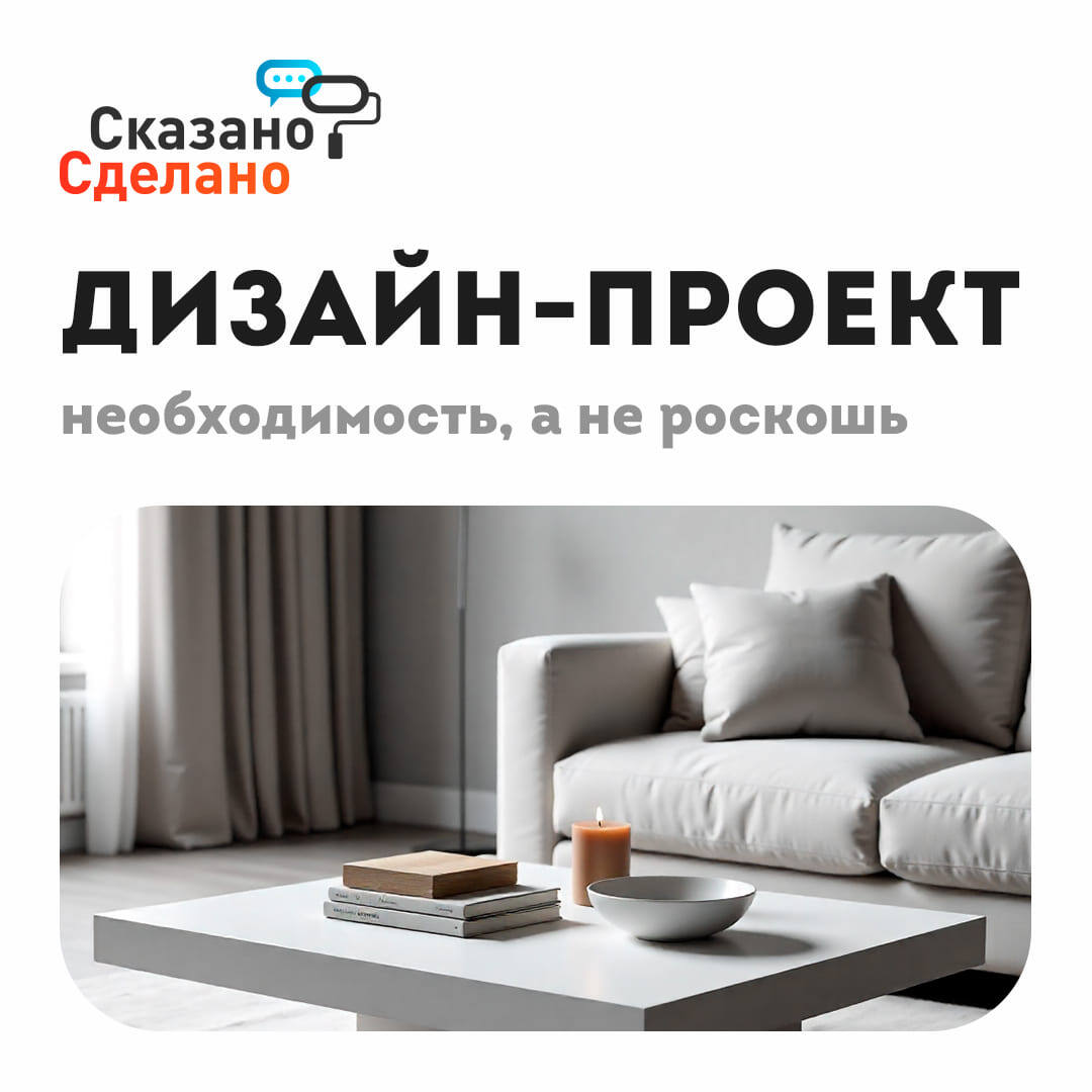 Глобальная задача дизайнера интерьера – стать проводником между мечтой клиента и реальностью. Предстоит проделать большую работу: материализовать запросы в рабочую документацию, воплотить эмоции в цветовые решения, отразить личную историю семьи в эргономичные функциональные зоны. Ремонт без дизайн-проекта – то же, что строительство дома без чертежа, путешествие без маршрута или приготовление блюда без рецепта. И вот почему. «Профессиональный дизайн-проект – не прихоть, а инструмент экономии денег, времени и сил, без которого ремонт превращается в череду переделок и новых незапланированных трат». Игорь, прораб СК «Сказано-Сделано» (Москва) Разработка авторского дизайн-проекта закладывает стратегическую основу масштабного ремонта и помогает создать продуманную среду, где каждый элемент служит эстетике, комфорту и экономии ресурсов.