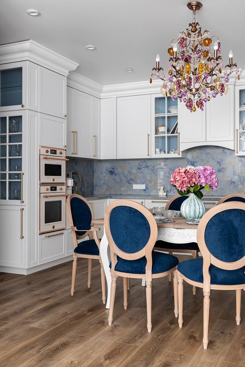 Гуровой и Татьяной Карташовой. В этом проекте кухни каждая линия выверена: ✅ Материал для фасадов - итальянская матовая эмаль Renner с фрезеровкой "Артис Модерн" ✅ Столешница и стеновая панель из кварцевого агломерата Etna Quartz ✅ Фурнитура Hettich: петли Senses ✅ Ящики AvanTechYOU Особая деталь проекта - навесные шкафы со стеклом. Задняя стенка выполнена в FeelWood Деним голубой - она тонко перекликается с фартуком и добавляет интерьеру глубину. Кухня сложной формы, которая идеально повторяет потолочный карниз. Ручки подобраны так, что становятся продолжением фрезеровки 👌 Так выглядит кухня, когда дизайнеры работают в команде и продумывают не только фасады, но и архитектуру пространства. Запись на встречу с дизайнером: 👉 https://n1251174.yclients.com