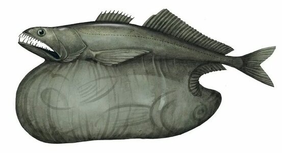 Голова черного живоглота непропорционально велика по сравнению с туловищем и вооружена чудовищными челюстями. Пасть рыбы — это настоящее произведение эволюционного инженерного искусства. Она не просто большая, она огромна, занимая большую часть головы. Челюсти не соединены жестко, как у большинства позвоночных; они крепятся при помощи специальных подвижных сочленений и эластичных связок. Нижняя челюсть выступает далеко вперед, и рыба может широко раскрывать рот, создавая огромную воронку. Но самое впечатляющее — это зубы. Они многочисленные, острые, загнутые внутрь, и даже при закрытой пасти видны снаружи, придавая рыбе угрожающий вид. Эти зубы выполняют две ключевые функции. Во-первых, они действуют как смертельный капкан: схватив жертву, живоглот не может ее разжевать, но его зубы, загнутые внутрь, надежно фиксируют добычу, не давая ей вырваться. Во-вторых, зубы работают как направляющие. Когда рыба заглатывает жертву, ее зубы буквально протыкают добычу насквозь, фиксируя ее положение, чтобы процесс заглатывания проходил более эффективно.
