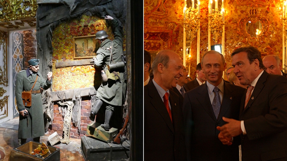 В середине сентября 1941 года город Пушкин был оккупирован немецкими войсками. Уже в начале октября в Екатерининский дворец прибыли специальные посланцы Гитлера - офицеры-искусствоведы, выполнявшие задание фюрера по сбору лучших произведений искусства для его будущего музея в австрийском городе Линц. Всего за две недели, к 14 октября, Янтарная комната была демонтирована, упакована в ящики и отправлена в Восточную Пруссию. Правда, изначально планировалось хранить ее в Риге, но гауляйтер Восточной Пруссии Эрих Кох и директор Художественных собраний Кёнигсберга, страстный поклонник янтаря доктор Альфред Роде, уговорили Гитлера временно выставить сокровище в Королевском замке Кёнигсберга.