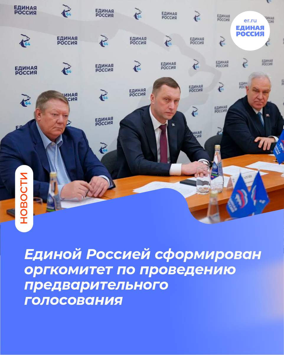 ⚡Сформирован Саратовский региональный организационный комитет по проведению предварительного голосования по кандидатурам для последующего выдвижения от Единой России кандидатами в депутаты Государственной Думы Федерального Собрания Российской Федерации девятого созыва в количестве 15 человек.