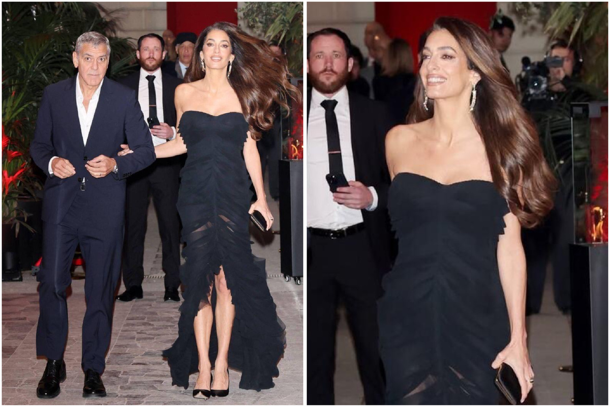 Амаль появилась в черном платье Versace, которое будто бы шили специально под ее характер. Силуэт мягко подчеркивал талию, а драпировка красиво двигалась при каждом шаге. В этом платье не было ничего лишнего, зато было ощущение легкости и дорогой простоты.