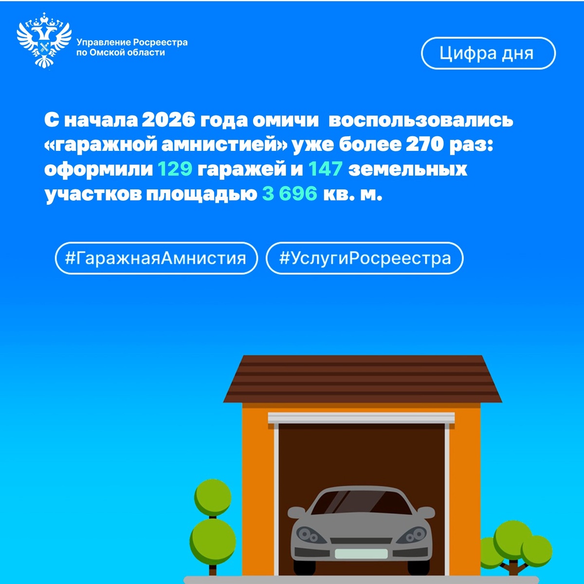 Программа «гаражная амнистия», действующая на основании Федерального закона №79-ФЗ «О внесении изменений в отдельные законодательные акты Российской Федерации» и предполагающая упрощенный порядок регистрации права собственности на гараж и землю под ним, успешно реализуется в Омской области на протяжении четырех с половиной лет. Наш регион по показателям неизменно попадает в ТОП-3, часто занимая лидирующую позицию при подведении промежуточных итогов. С сентября 2021 года Росреестр зарегистрировал по всей стране права более чем на 746 тыс. гаражей и земельных участков под ними, из них 249,4 тыс. гаражей и 496,8 тыс. земельных участков под ними. С начала реализации закона наибольшее количество гаражей зарегистрировали в Ленинградской (17,4 тыс.), Омской (13,6 тыс.), Московской (9,9 тыс.), Саратовской (9,9 тыс.) и Тюменской (9 тыс.) областях. Лидерами по числу оформленных земельных участков под гаражами стали Ленинградская (39,4 тыс.), Московская (21,7 тыс.), Саратовская (21,6 тыс.) област