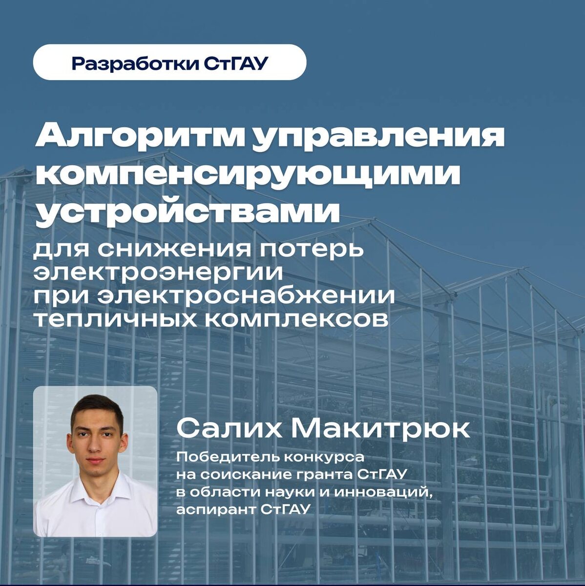 ! 🔋 Аспирант Института Механики и энергетики Салих Макитрюк разрабатывает алгоритм управления компенсирующими устройствами для снижения потерь электроэнергии при электроснабжении тепличных комплексов. Работа ведется в рамках проекта Научного центра мирового уровня «Агроинженерия будущего». 💬 Для чего это нужно? Разрабатываемый алгоритм позволит учитывать динамические изменения нагрузок, обеспечивая оптимизацию режима работы компенсирующих устройств и повышение энергоэффективности системы электроснабжения. 💬 Как это работает? Алгоритм будет анализировать нагрузку в сети тепличного комплекса, исходя из данных, полученных при анализе электропотребления. Далее будет определяться оптимальное количество ступеней конденсаторных батарей для подключения с целью минимизации потерь электрической энергии и поддержания необходимого уровня напряжения. 💬 Где будет использоваться? Разрабатываемый алгоритм может быть интегрирован в систему электроснабжения крупных тепличных комплексов, имеющих