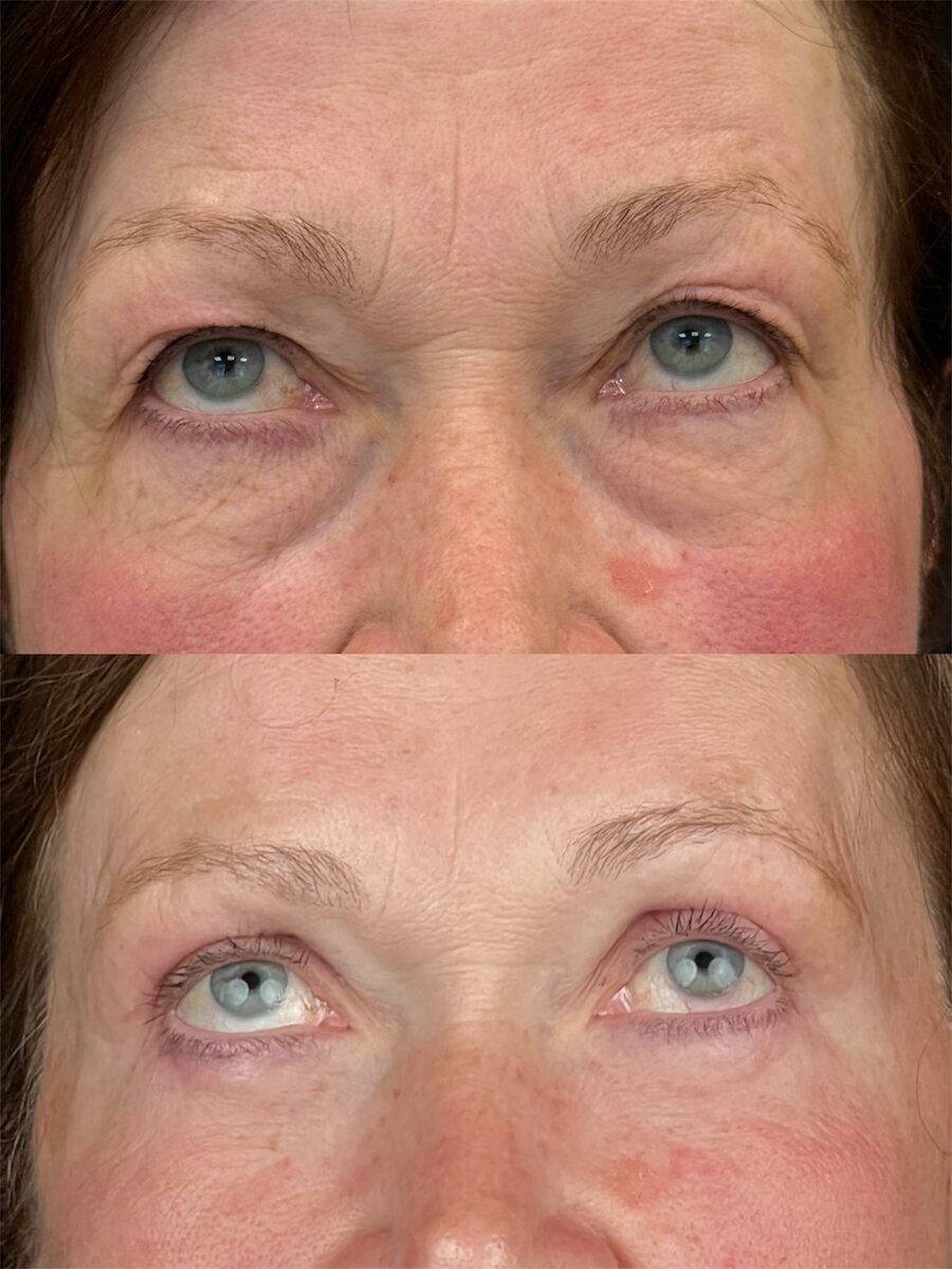 Часто кажется: ну что там блефаропластика, срезали лишнее, и готово. На самом деле каждый случай уникален, и универсальных решений не бывает. Для Елены мы подбирали методику индивидуально, чтобы результат был максимально естественным и гармоничным именно для её лица. Сделали верхнюю блефаропластику и нижнюю с миопексией, чтобы не просто убрать грыжи, но и поддержать мышцы, сохранив молодой контур 🔥 Спустя 4 месяца видно, как преобразился взгляд. Ушла усталость, исчезли припухлости, веки выглядят свежими и отдохнувшими. Но главное — Елена осталась собой. Мы не меняли разрез глаз, не делали "другого" лица, просто вернули ему ту лёгкость, которая была много лет назад. Миопексия в нижних веках даёт более долгий и устойчивый результат, потому что фиксирует мышцу и не даёт ей опускаться снова. Именно такие тонкости и делают работу индивидуальной. Елена довольна, а мы счастливы быть частью этой истории 🤍