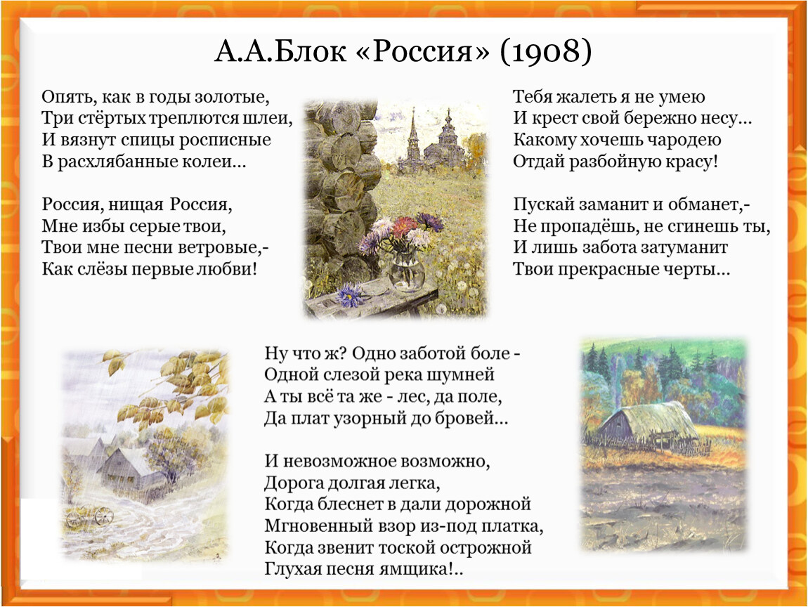 Стихотворения Александра Блока о России звучали в те годы, когда страна неуклонно приближалась к катастрофе. В это время даже сама любовь к Родине приобретала внутренний драматизм. Прошло много лет, но и сейчас эти стихи звучат удивительно современно.