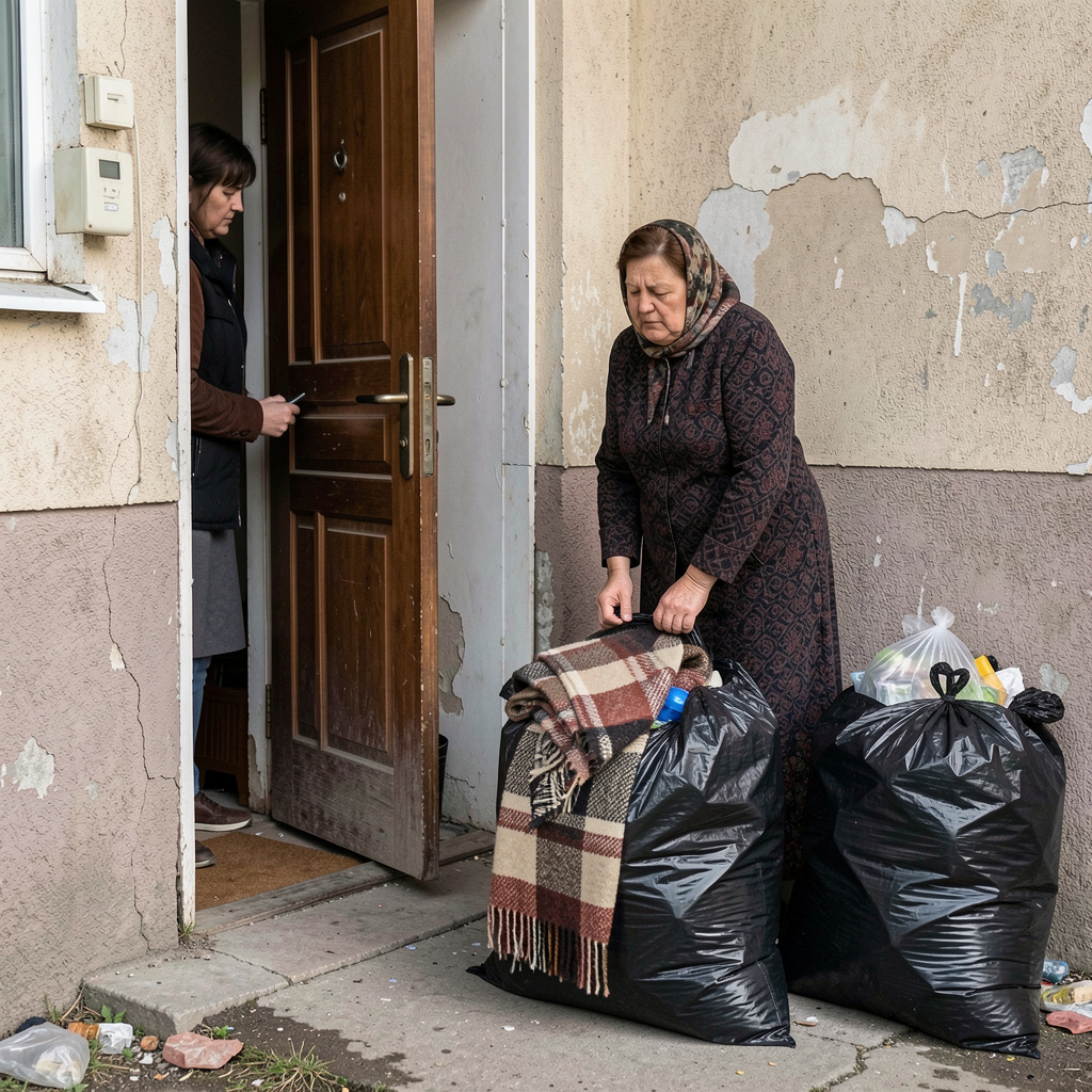 Катя усмехнулась, кивнула в сторону лестничной клетки. Только сейчас Лидия Михайловна заметила два больших целлофановых мешка, прислоненных к стене. Из одного торчал угол ее старого пледа, которым она укрывалась по вечерам. Из другого — рукав любимого ситцевого халата, того самого, в котором она ходила по дому уже двадцать лет.