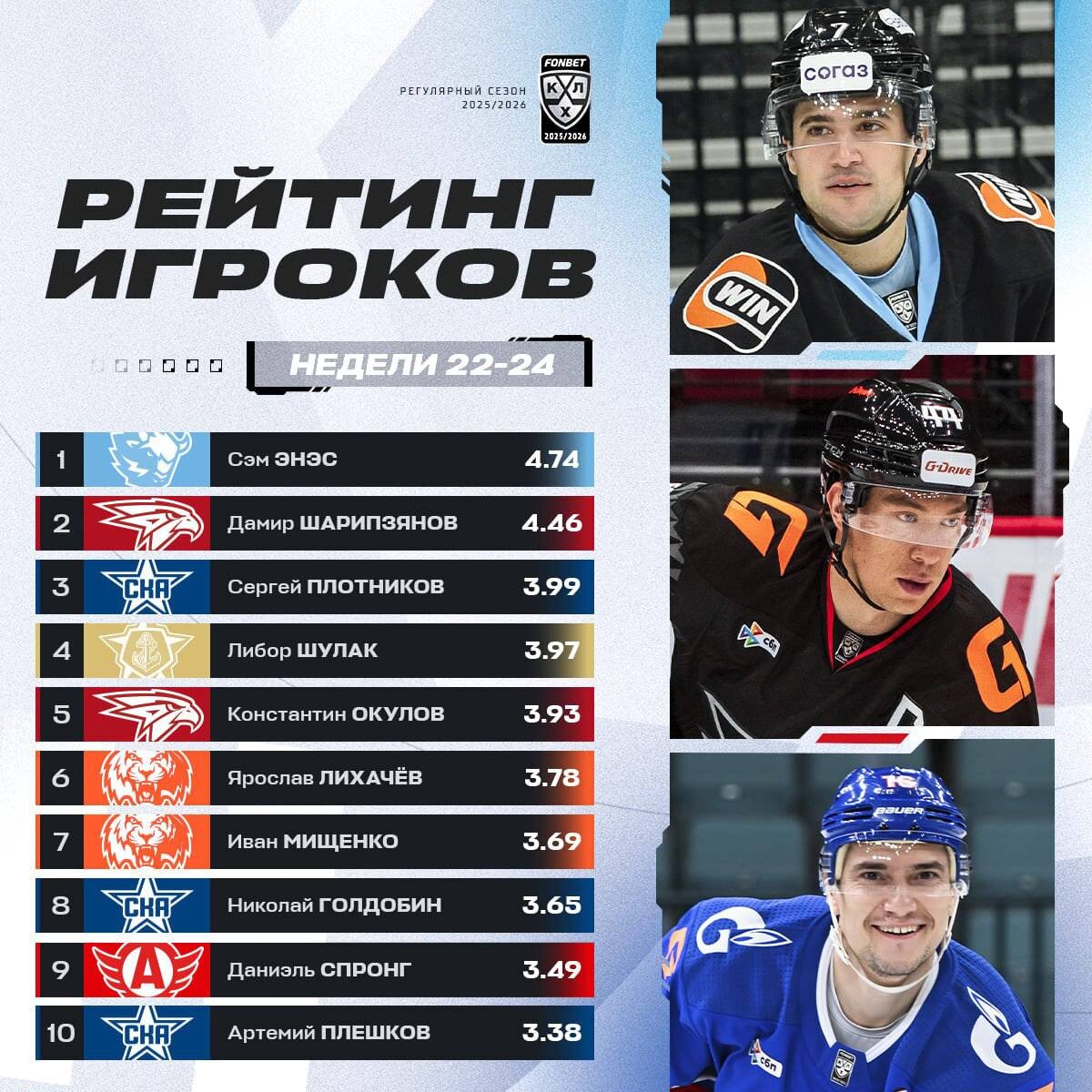 Сэм Энас по итогам 9 встреч набрал 20 (6+14) баллов. За основной этап сезона белорусский форвард уже заработал 80 (29+51) очков.
