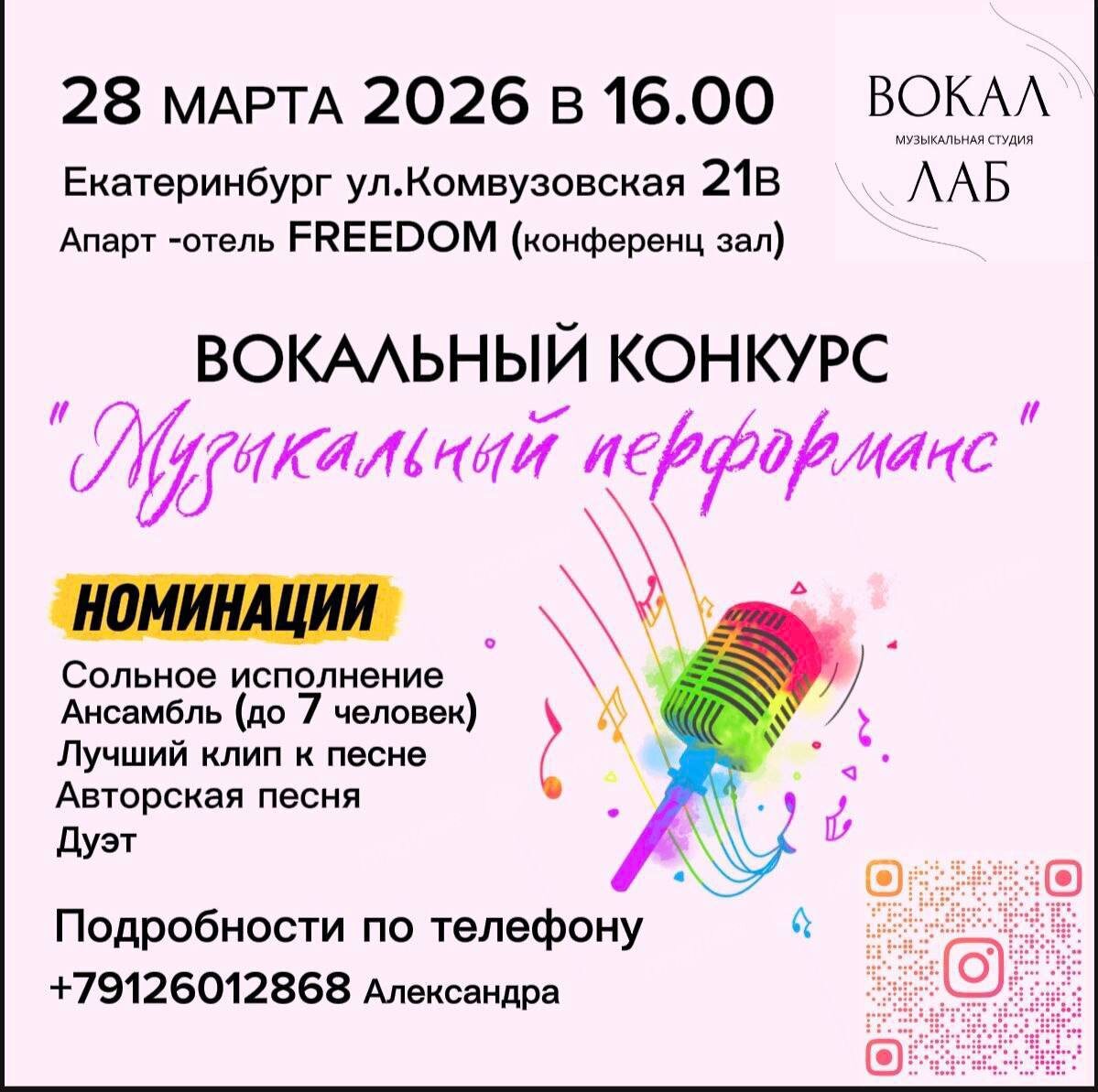!🎤 Конкурс пройдет 28 марта 2026 в 16:00 по адресу г.Екатеринбург ул.Комвузовская 21В Апарт -отель FREEDOM. Подробности у организатора по ссылке в ВК https://vk.ru/wall-221960304_303