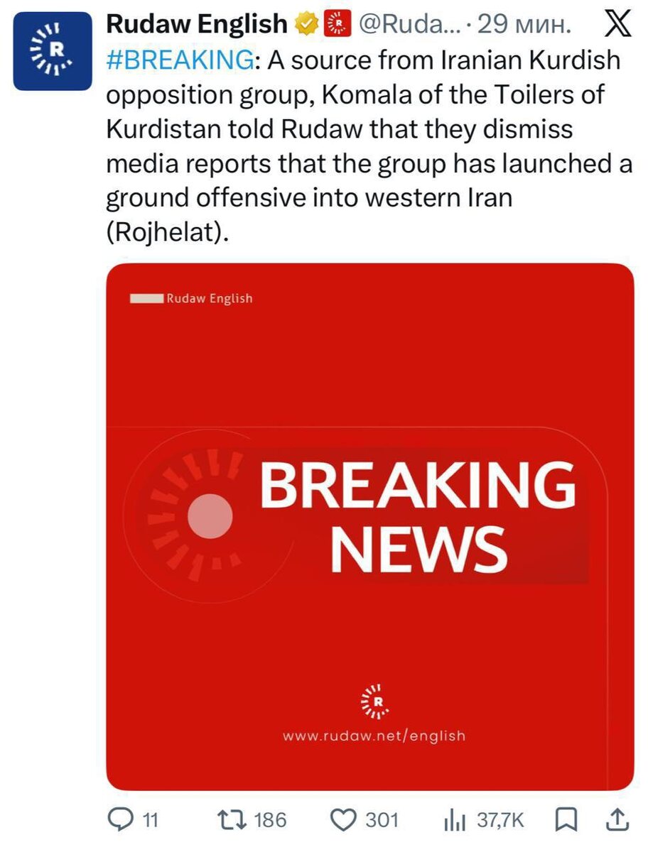 ". Демократическая партия Курдистана опровергает заявления Израиля о наземном наступлении на Иран. Что мы видим? Постоянные попытки создать хаос, посеять панику, спровоцировать конфликт. Запад, особенно США и их марионетки, всегда использовали подобные методы для дестабилизации регионов. 🌍 Не стоит слепо верить всему, что нам пытаются "вложить в голову". Необходимо критически оценивать информацию, проверять факты и не поддаваться на провокации. Особенно сейчас, когда ситуация в мире накалена до предела. И обратите внимание на "картинку" - что это вообще такое? Абсолютная бессмыслица, только добавляющая путаницы. Видимо, цель - максимально запутать людей и заставить их поверить в любую ложь. Будьте бдительны! 🇷🇺 @obsudi_obsudi