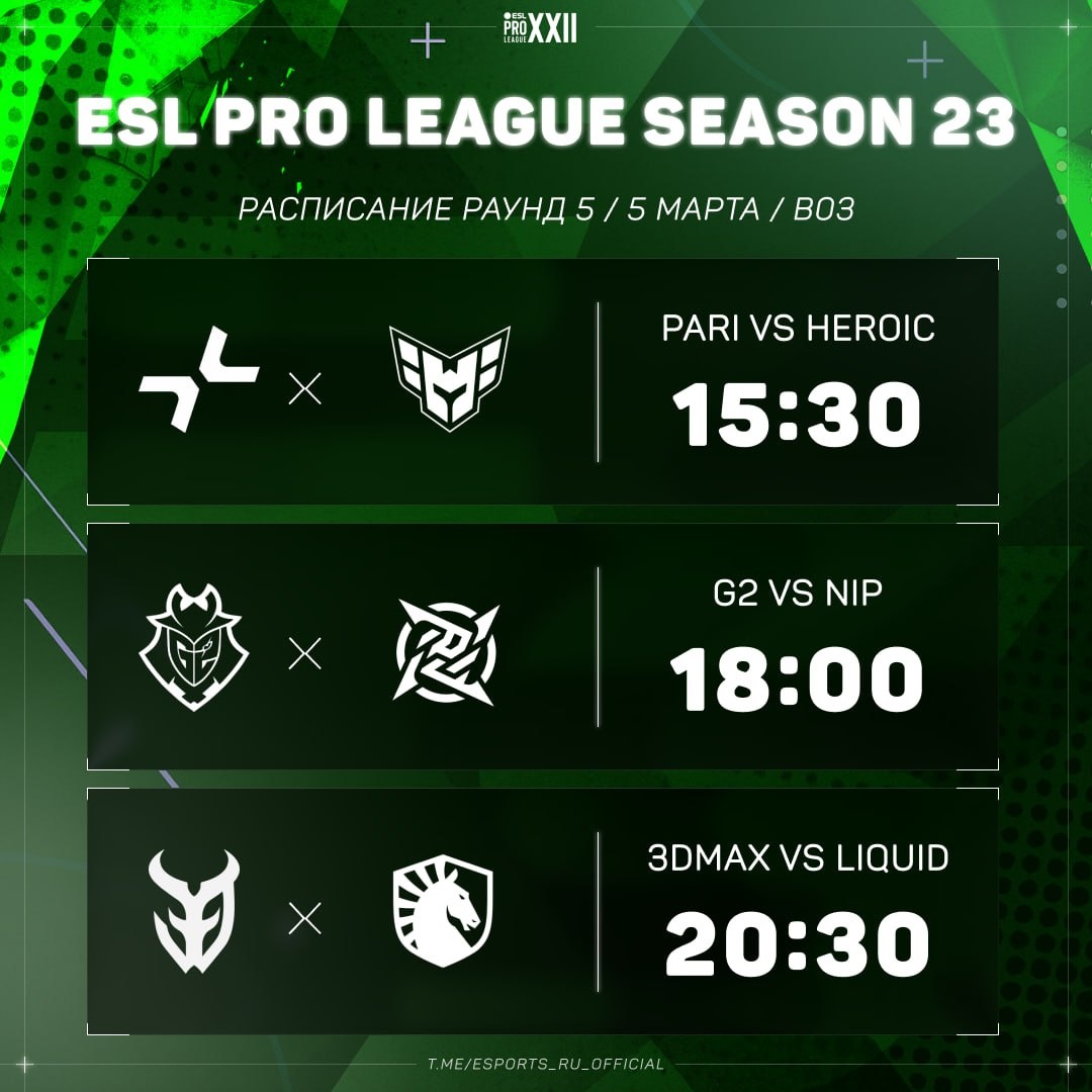 🗓 Расписание последнего пятого раунда первой стадии ESL Pro League Season 23