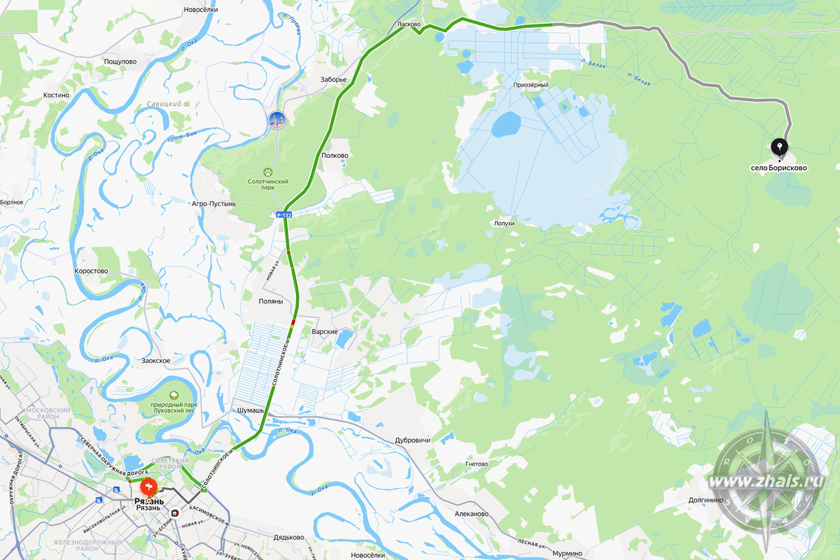 В 60 км от Рязани, фактически по соседству с поселком Деулино (в 8 км от него), в еще более укромном уголке Мещеры, находится небольшое село Борисково (по переписи 2010 г. в нем проживало 58 человек), к которому мы и направляемся.