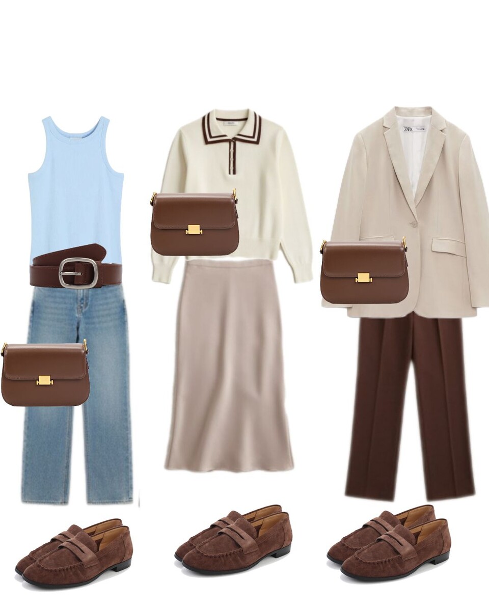 Каждая капсула основана на определенной цветовой формуле. Здесь мы выбрали сочетание оттенка шоколада и холодного светлого бежевого цвета. Для придания легкости и обновления образа рекомендуем добавить легкий голубоватый акцент, который оживит строгий минимализм и внесет нотку весны.