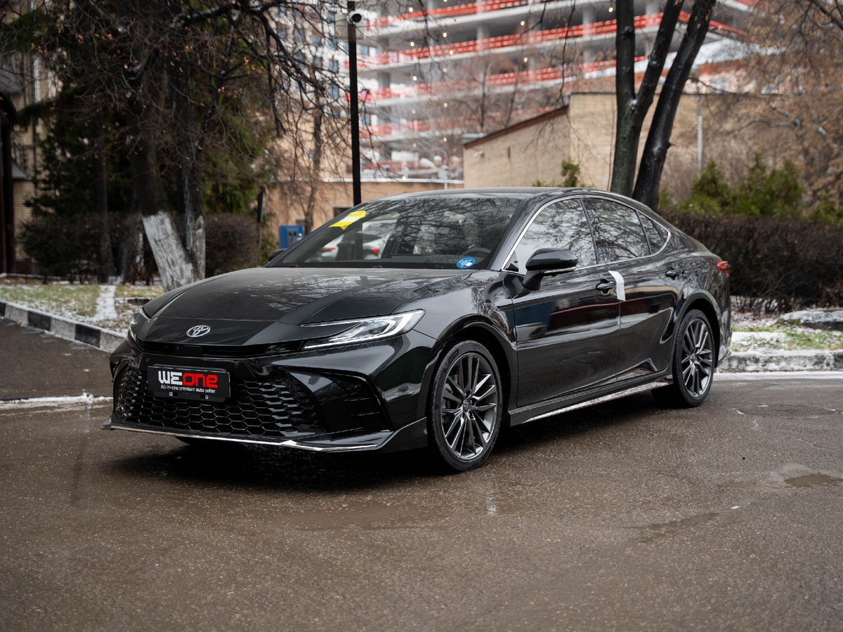 Toyota Camry — один из самых продаваемых седанов в мире. Модель выпускается с начала 80-х годов, и за это время она разошлась тиражом более 20.000.000 автомобилей. Camry всегда была понятной машиной, без сложностей, без капризов и с той самой репутацией надежности, из-за которой ее часто выбирают на долгие годы. Как и всю Toyota в принципе. Рассмотрим вариант Toyota Camry 2025 года. С минимальным пробегом, км до 20, без регистраций, с действующим ЭПТС. Под капотом гибридная установка: 2 л двигатель в сочетании с электромотором выдает 231 л.с., а разгон до 100 км/ч занимает 7.2 с. Черный кузов — строгая классика. Оснащение здесь богатое: адаптивный круиз-контроль, камеры кругового обзора, контроль слепых зон, электронная приборная панель и проекционный дисплей. Есть вентиляция передних сидений, многозонный климат-контроль, бесключевой доступ и полный набор систем безопасности. То есть тот самый удобный и понятный седан, но теперь с богатым набором технологий. Аналогичную Camry можем