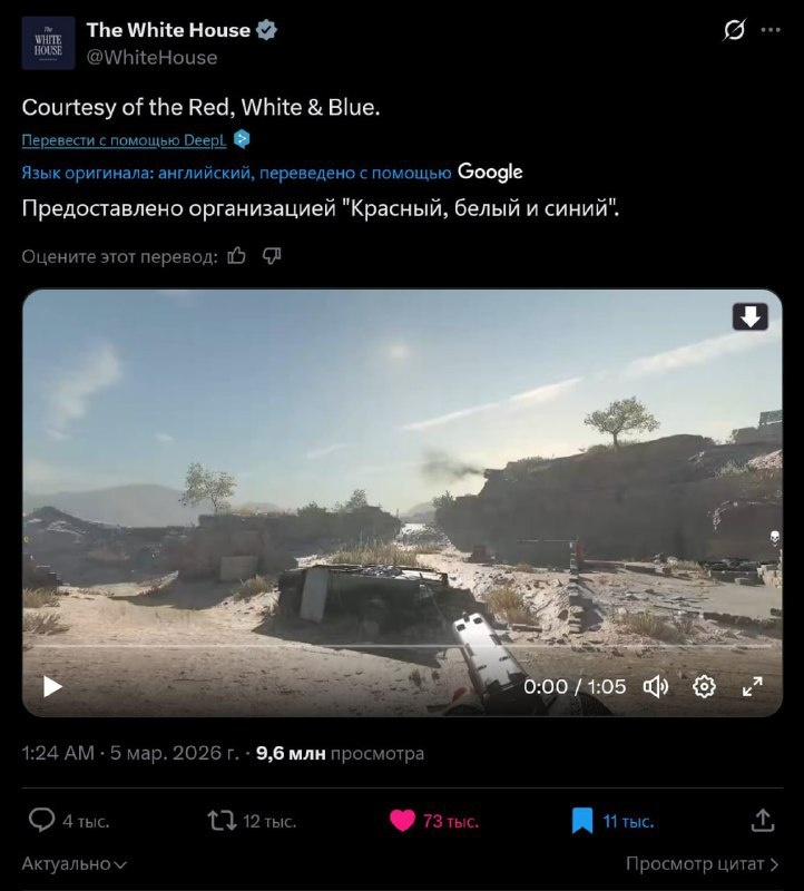 ‼️ 🇺🇸 🇮🇷 Война как игра? Белый дом опубликовал нарезку ударов по Ирану, будто это видеоигра