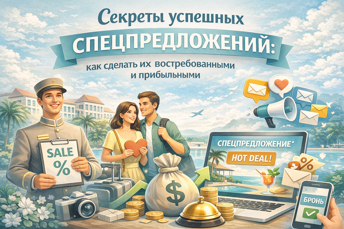 Спецпредложения — это мощный инструмент, чтобы привлекать гостей, повышать лояльность и эффективно заполнять низкий сезон. Однако для того, чтобы они реально приносили выгоду и пользовались спросом, нужно правильно подойти к созданию и продвижению акций. В этой статье расскажем, как сделать спецпредложения эффективными. 1. Разработайте разные предложения для каждой целевой аудитории Ошибка многих отелей — это создание одного универсального спецпредложения для всех. У разных типов гостей разные потребности, и важно предложить им то, что им нужно. 📌 Пример: Чем точнее вы подберете предложение для каждого сегмента аудитории, тем выше будет отклик на вашу акцию. 2. Закладывайте реальную выгоду для гостей Гости быстро понимают, когда скидка — это лишь маркетинговый ход и не имеет реальной ценности. Чтобы спецпредложение действительно работало, оно должно быть выгодным и привлекательным.