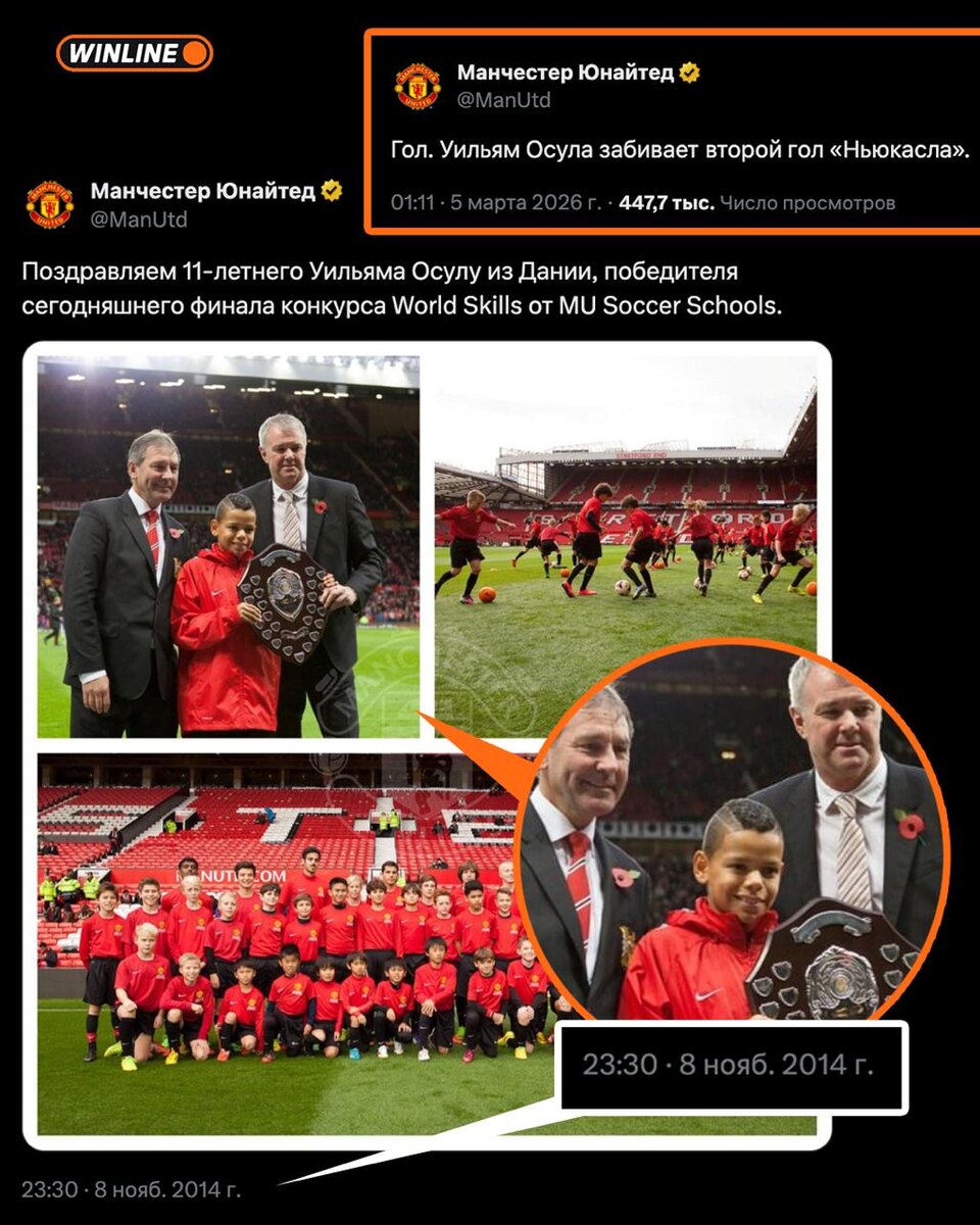 ! Вот так 11-летний воспитанник Копенгагена Уильям Осула в 2014 году проник в стан будущего соперника, чтобы изучить МЮ изнутри и закинуть им победный гол на 90 минуте во вчерашнем матче. 🟥🏴2️⃣🆚1️⃣🏴