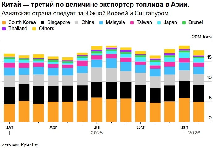 Правительство Китая приостановило экспорт дизельного топлива и бензина из-за конфликта в Персидском заливе, предложив нефтеперерабатывающим заводам прекратить новые контракты и пересмотреть уже согласованные поставки, за исключением поставок в Гонконг и Макао. Эти меры направлены на удовлетворение внутренних потребностей, хотя Китай импортирует почти половину своей нефти из региона. Представители Национальной комиссии по развитию и реформам КНР провели встречу с руководителями нефтеперерабатывающих компаний и рекомендовали временно приостановить экспорт нефтепродуктов. Эти обсуждения проходили в закрытом формате, поэтому источники попросили не раскрывать их имена. На встрече обсуждались меры по прекращению заключения новых контрактов на поставку нефтепродуктов и переговорам об отмене уже согласованных контрактов. Исключение было сделано для авиационного и бункерного топлива на таможенных складах, а также для поставок в Гонконг и Макао. Крупные государственные компании, такие как PetroC