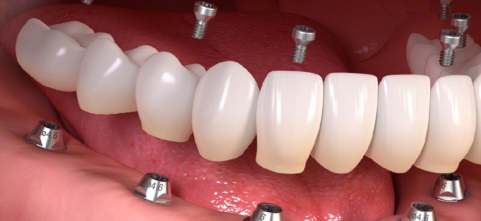- Отсутствуют все собственные зубы на одной или обоих челюстях. Современные технологии одновременного внедрения четырех и более имплантов позволяют поставить несъемный протез для всего зубного ряда одновременно.