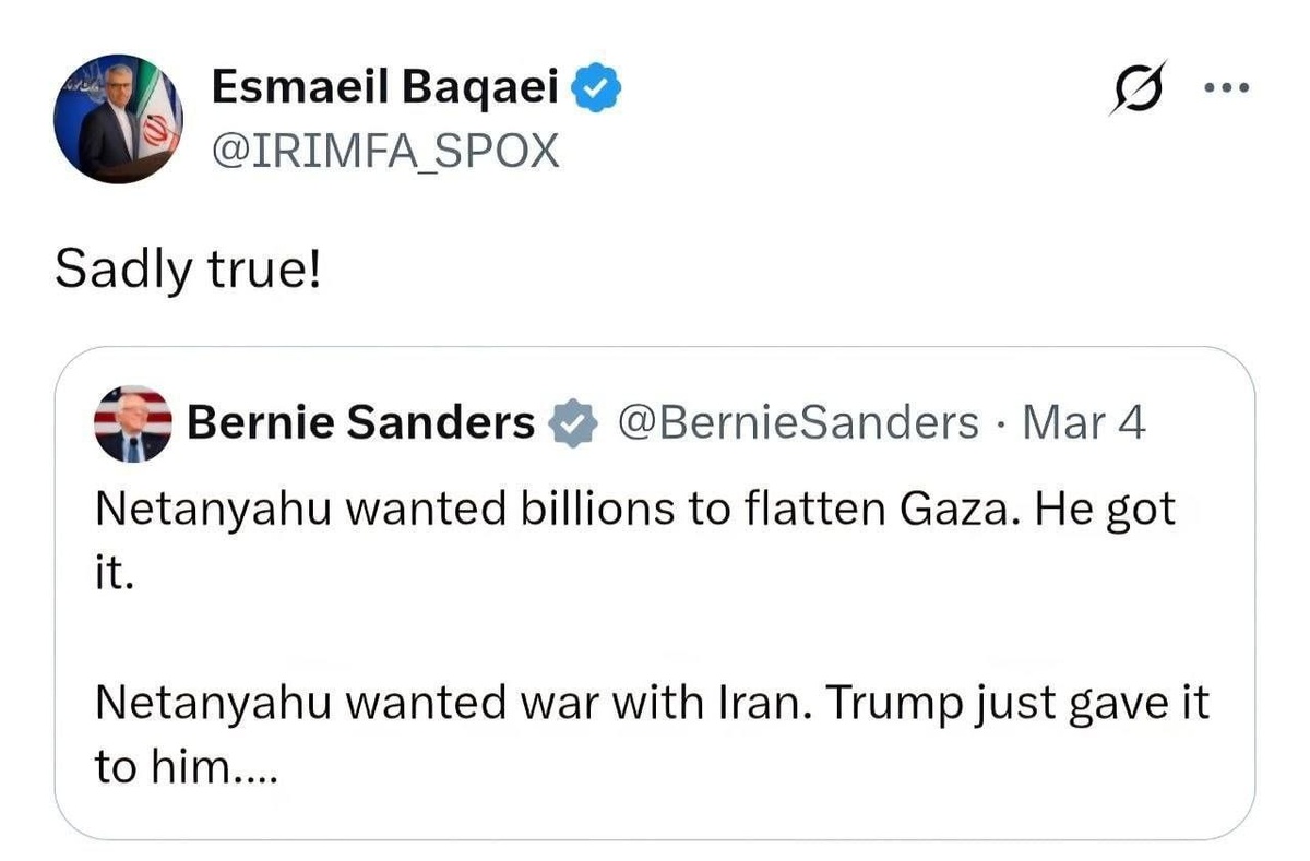 Baqaei wrote on X that Sanders’ assessment was ‘sadly true’
