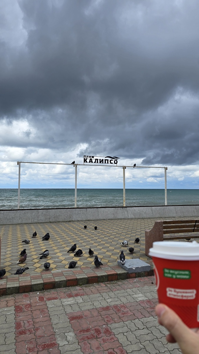 Морское пасмурное доброе утро из Лазаревского, местами был дождик с мелкой крупой. Наверху (100-200м) холоднее 🥶