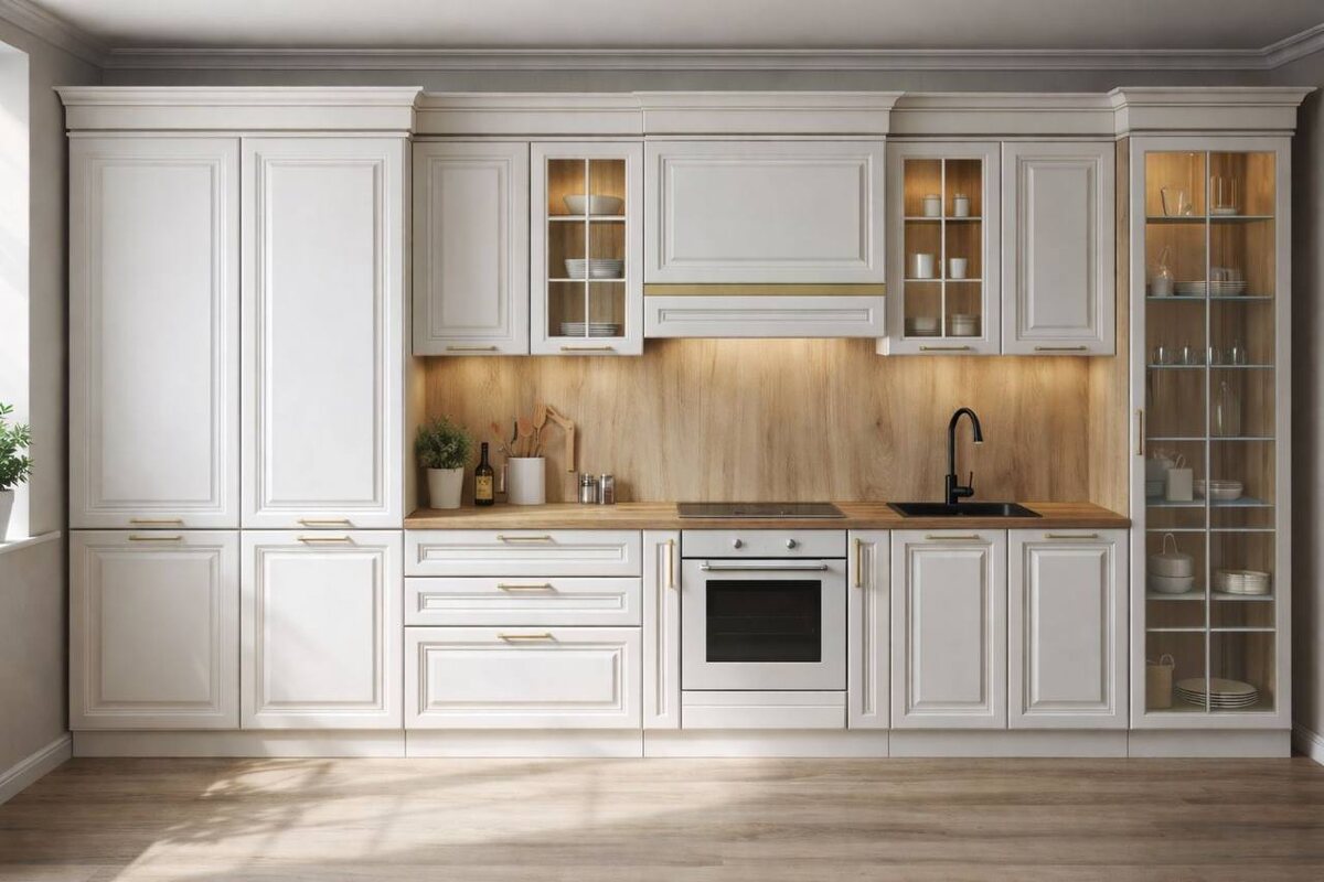 Буденновск* Кухня Дольче Вита✨ Фасад: *Крашеный МДФ* Корпус: *ЛДСП* Цвет: *Белый* Цена 🔥*123 000₽*🔥 *Размер кухни с карнизами - 4.74см* *Без карниза - 4.60см* *Пенал духовка - 1.20см* *Пенал сервант - 60см* *Высота кухни - 2.45см* *Стеновая панель и столешница дуб вотан (дерево)* *Дверные петли с доводчиками* *Столешница толщиной 38мм. Выполнена из влагостойкого ДСП.*