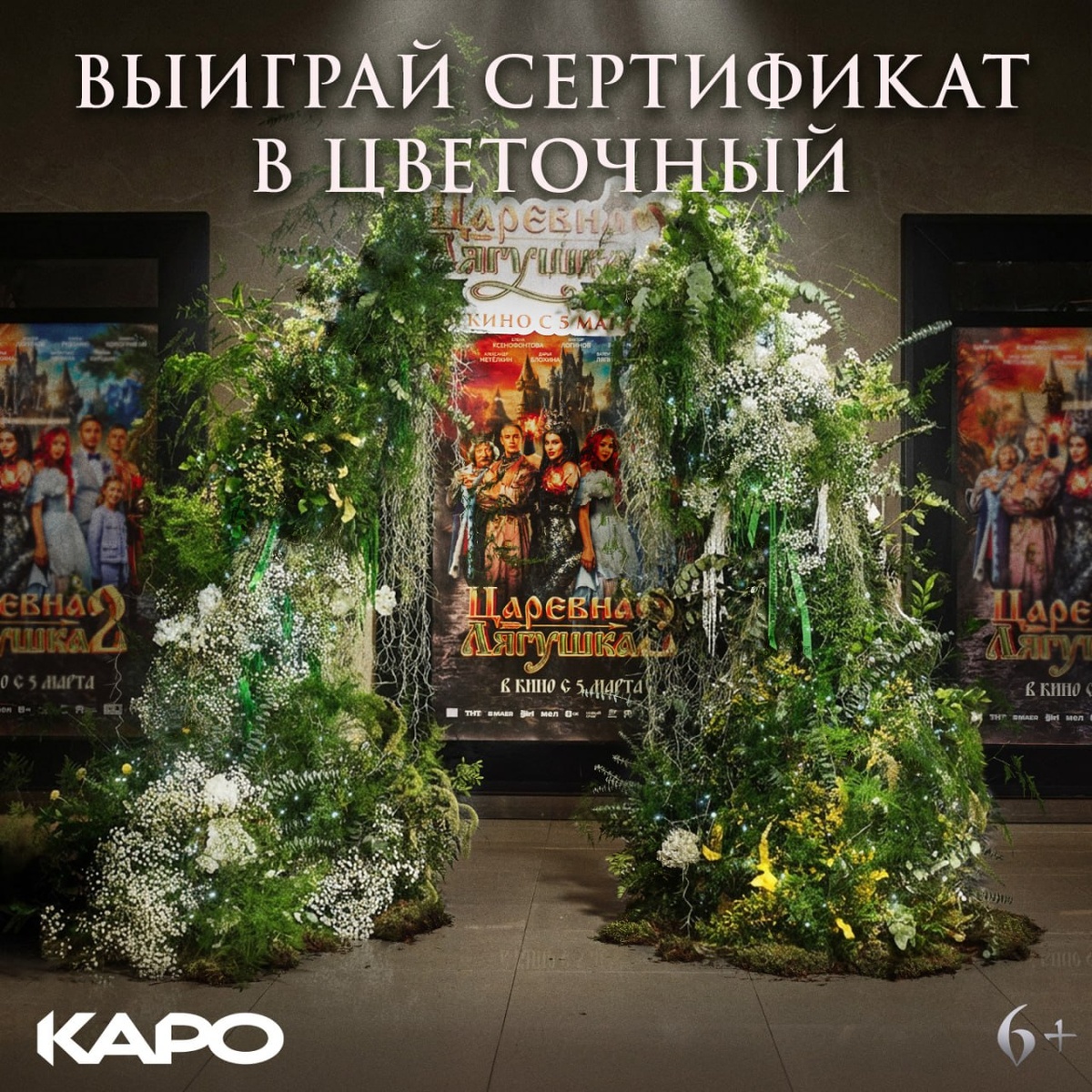 🥝🍅🍆🥑🥑 В честь выхода фильма «Царевна-Лягушка 2» мы вместе с нашими партнерами из TRUECOSTFLOWERS решили порадовать вас подарочками к 8 марта❤️ Разыгрываем: 🎁 Сертификат на 10.000 в цветочный магазин 🎁 Сертификат на 10.000 в цветочный магазин 🎁 Сертификат на 10.000 в цветочный магазин 🎁 Билеты в кино 🎁 Билеты в кино Что делать: 1️⃣ Быть подписанным на @Сеть кинотеатров КАРО и @truecostflowers_official 2️⃣ Сфотографироваться на фоне брендированной цветочной стойки в КАРО 11 Октябрь (Москва) 3️⃣ Выложить фото в своих соцсетях 4️⃣ Отправить скрин публикации в комментариях под этим постом Стойка будет доступна в кинотеатре только до 10 марта, поэтому предлагаем встречать праздники на сеансах «Царевны-Лягушки 2»😉 Победителей самых креативных публикаций выберем 11 марта и опубликуем под этим постом. Желаем всем удачи!