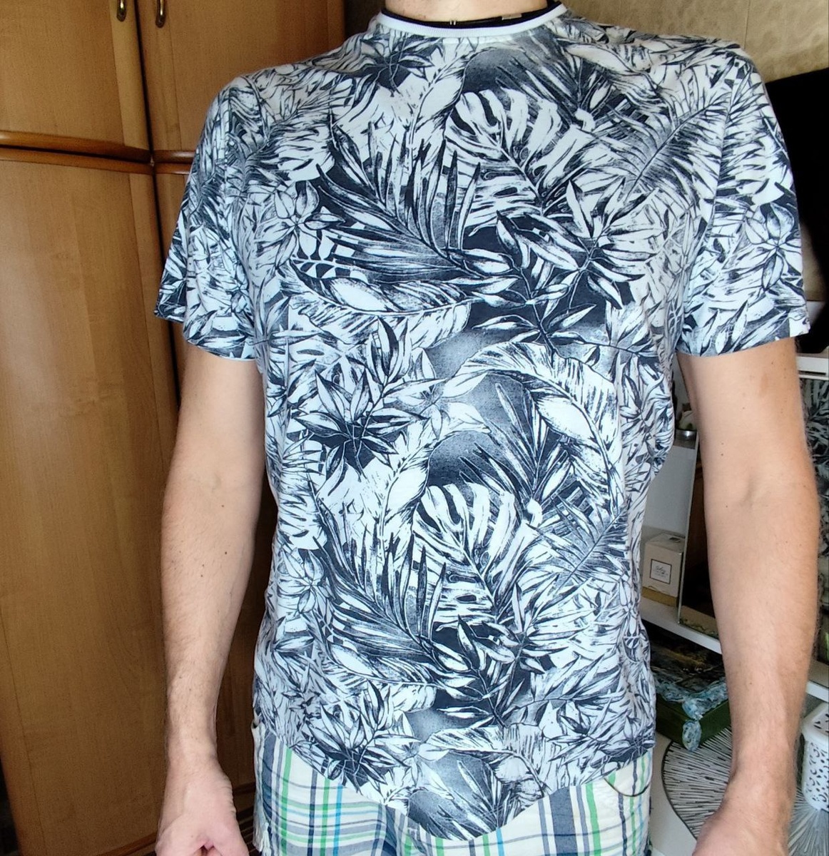 100% хлопок! Размер XL 54 Модная, современный дизайн расцветки. В идеальном состоянии, очень хорошего качества. Прямой крой. Производство Бангладеш Длина по спинке - 76 см Полуобхват груди - 60 см Длина рукава - 25 см Цена 1800 руб + пересылка