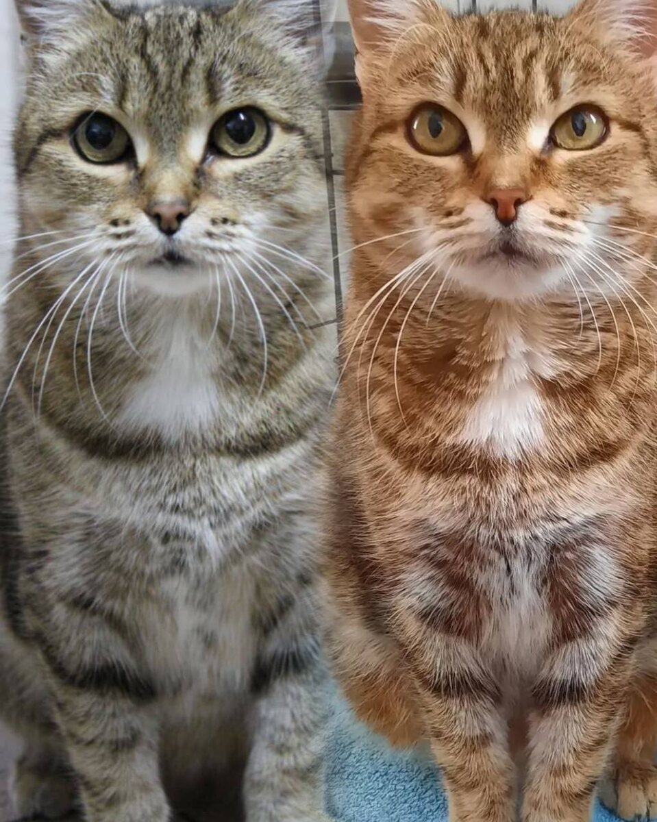 😊🤭 Муся. Вот такая разная наша Муся. 1-е фото - искуственный свет, 2-е - дневной. Кто не знает, не помнит Муся мама Васеньки. Это было выяснено позже, после того, как их вытряхнули из мешков у нас на территории …