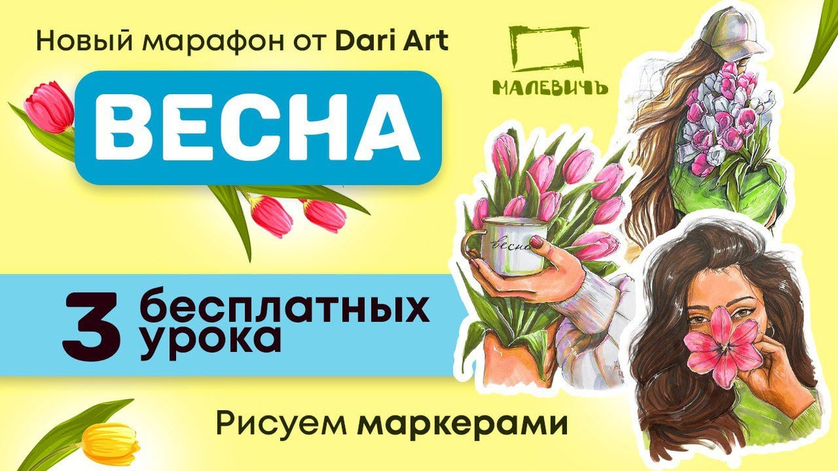 🌿 На календаре - весна! И пусть пока самая ранняя, во многих городах мы ее почти не чувствуем, но ощущения уже поменялись ☀️ Давайте вместе создавать яркое настроение себе и окружающим с помощью творчества! Предлагаем вспомнить уроки марафона "Весна" от Дари Арт 👀 А если у вас уже есть рисунки по этим урокам, обязательно поделитесь в комментариях 🧡 ________ Материалы для всех уроков: - бумага для маркеров - 13 маркеров (в уроках палитра маркеров Graf'Art Малевичъ C201 C203 C205 C207 C210 P403 T503 T202 T406 G302 G104 P301 P303), - цветные карандаши коричневый, черный и белый. - простой карандаш и ластик - линер стойкий к спиртовым чернилам (02 или тоньше) - белый маркер или ручка для бликов - обязательно продумайте фиксацию листа и если лист промокает, положите непромокайку (дополнительный листочек, чтобы не пачкать нижнюю страницу)