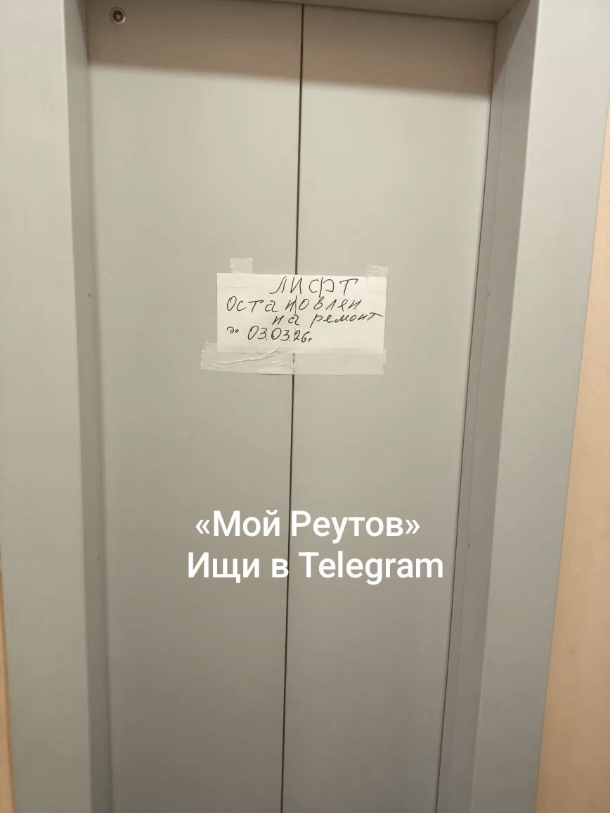 Закрыли лифт на ремонт на прошлой неделе. Должны вчера были запустить. Ничего не изменилось. Ремонтом никто не занимался. #отподписчиков «Мой Реутов» ВКонтакте: https://vk.ru/my_reutov