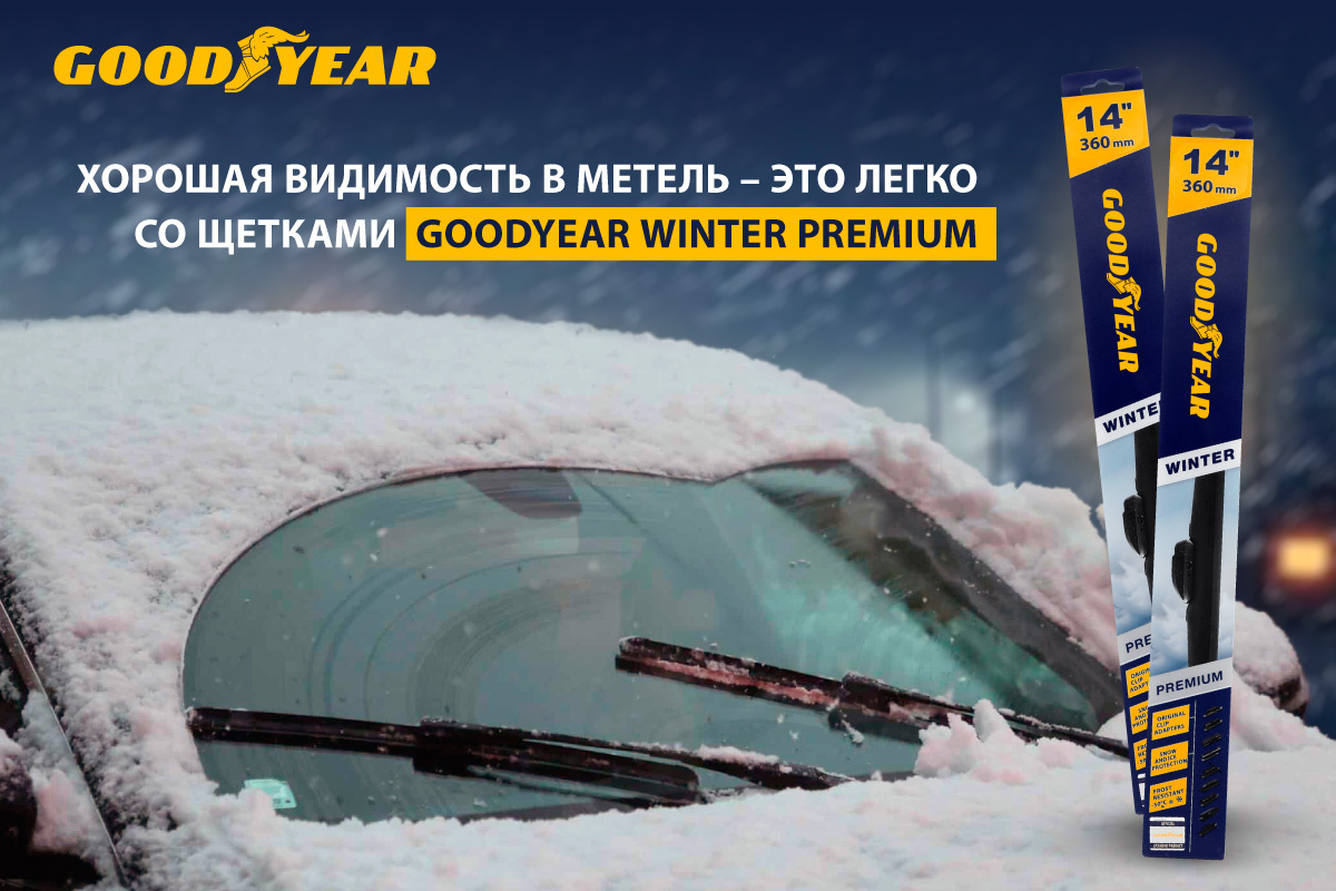 Зимой поддерживать лобовое стекло в чистоте особенно трудно Снег и лед налипают на обычные летние или всесезонные щетки становятся абсолютно неэффективны. Ухудшение видимости чревато усталостью водителя, потерей концентрации и, что самое опасное – высоким риском ДТП. Рекомендуем делать все возможное, чтобы обеспечить себе максимальную безопасность на дороге. Шаг №1 – приобрести специальные зимние щетки, которые справятся с зимними вызовами. Почему стандартные дворники не могут гарантировать безопасность зимой На морозе резина обычных щеток теряет эластичность и «дубеет». Снег налипает на дворники, их каркас обледеневает. В результате они попросту не выполняют свою функцию. А вы, тем временем, на трассе, да еще и в темноте, вынуждены напрягаться, щуриться и рисковать. Чем хороши щетки Goodyear Winter Premium? Зимние щетки Goodyear Winter Premium разработаны специально, чтобы вы не попадали в подобные неприятные ситуации. Их лезвие сделано из резины высочайшего качества и остается эласти